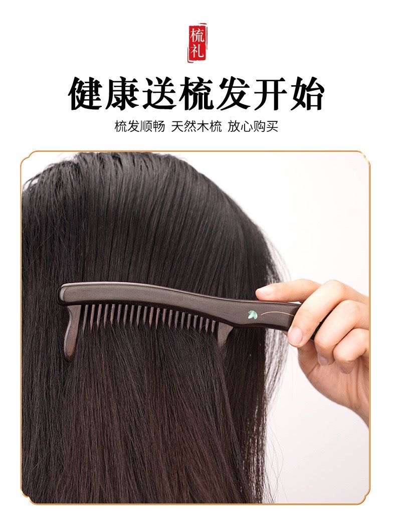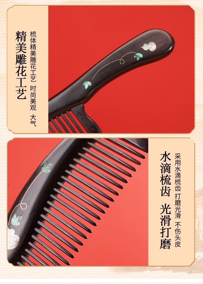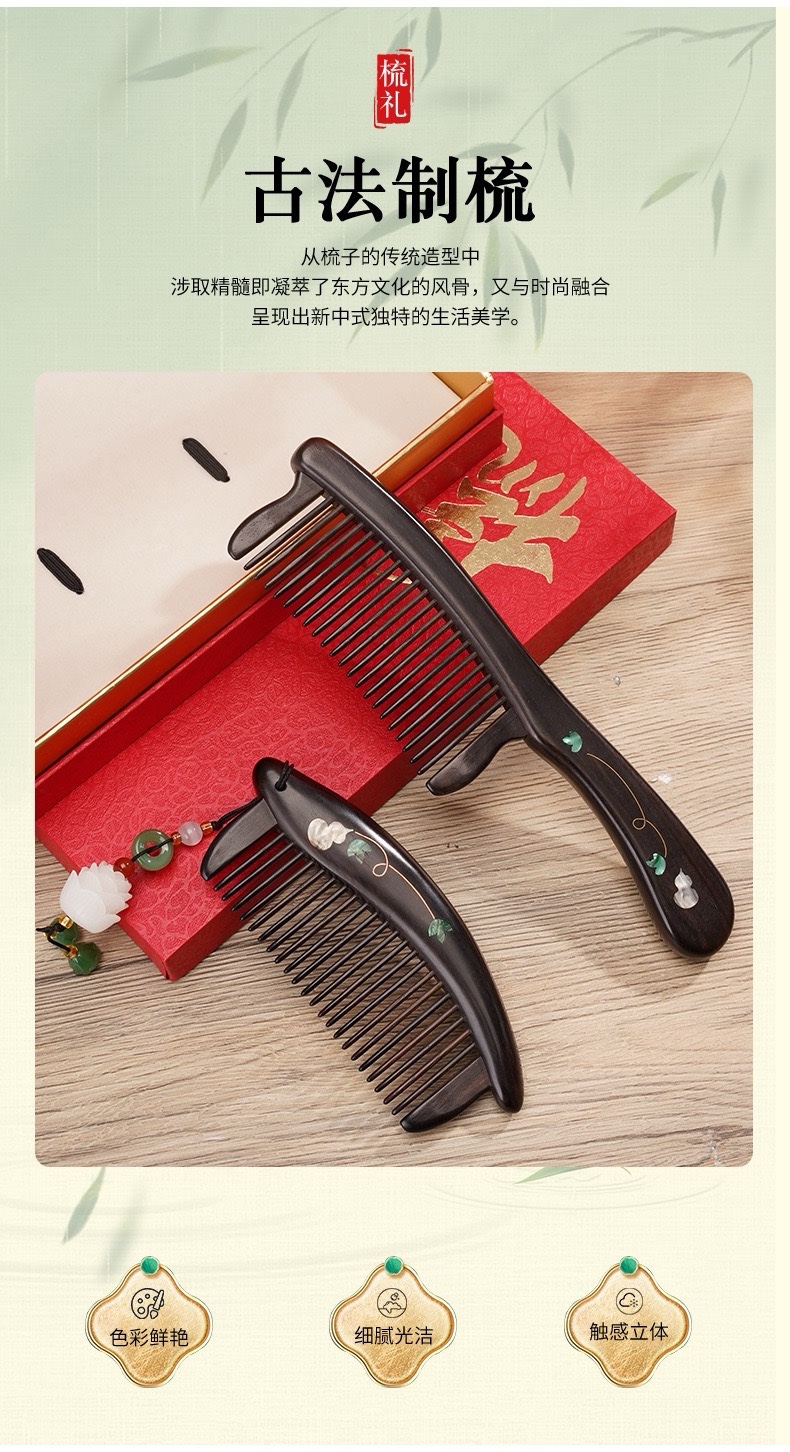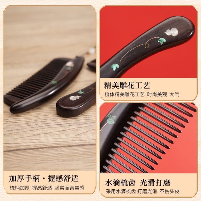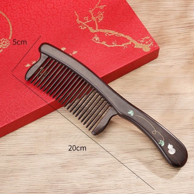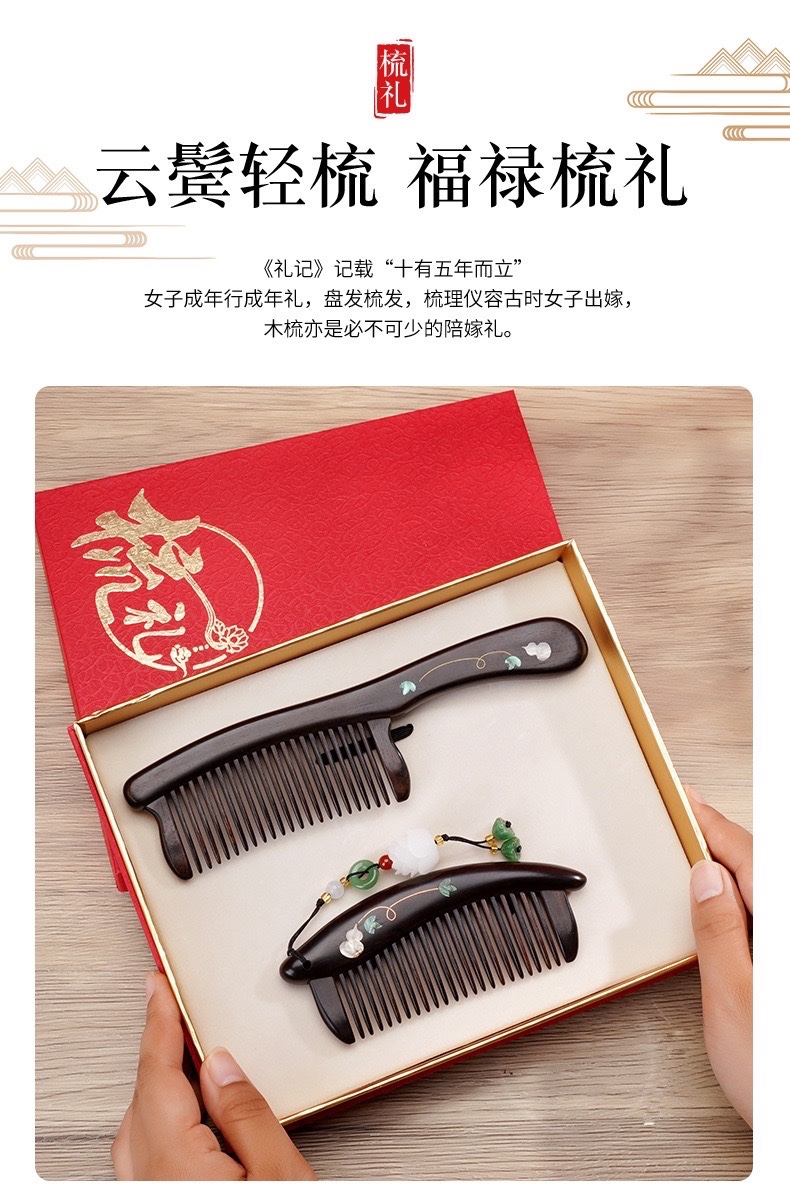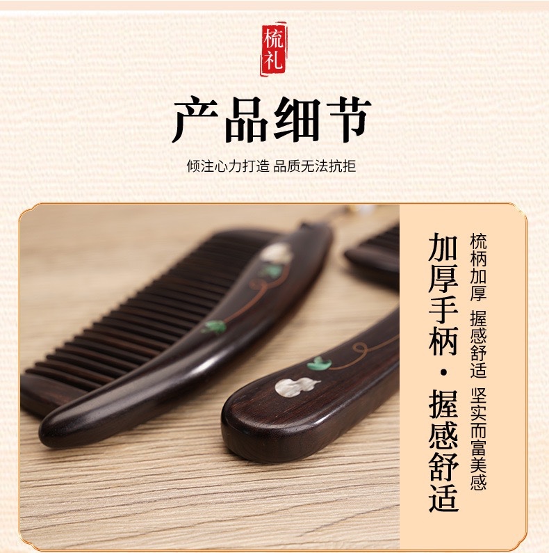 天然紫光檀木镶嵌葫芦柄梳礼盒装