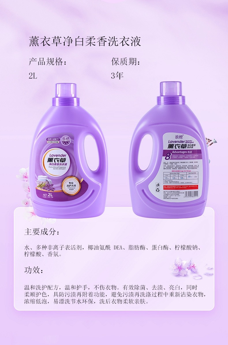 浪橙薰衣草洗衣液高档家用温和无刺激婴儿适用洗衣液浓缩型2KG*10瓶