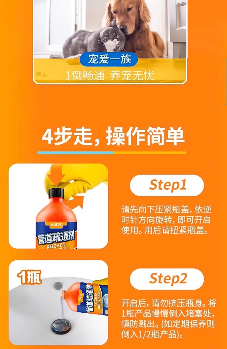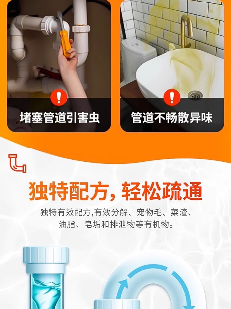 再三强调:此疏通剂不可用于有铝管或软管的地方!