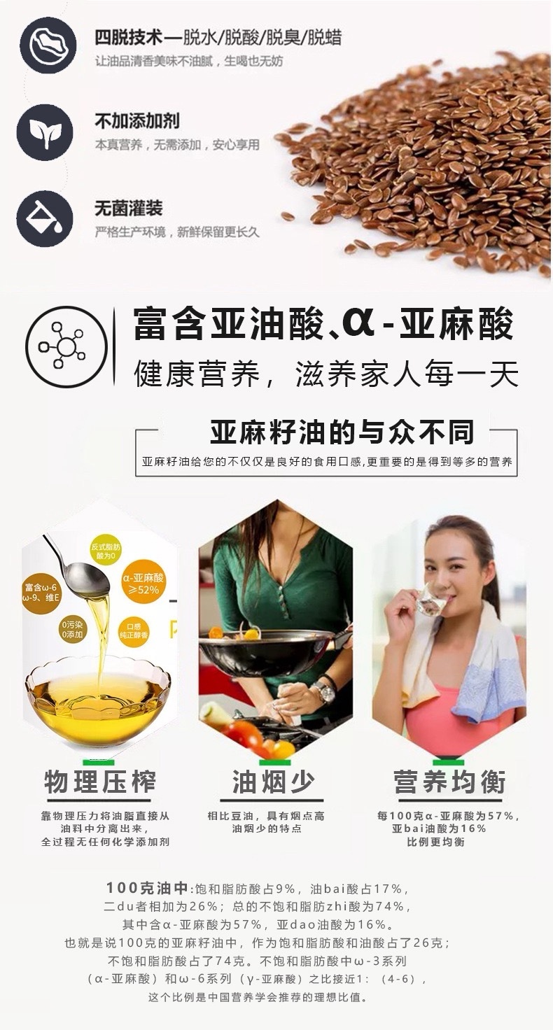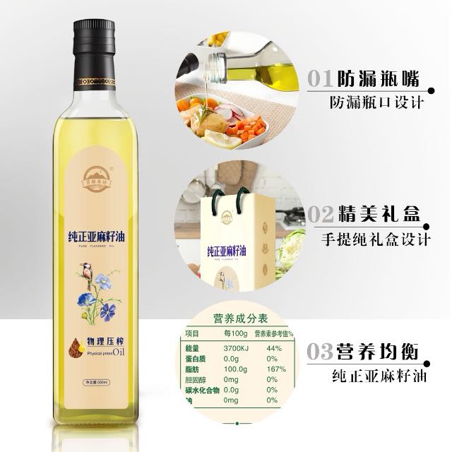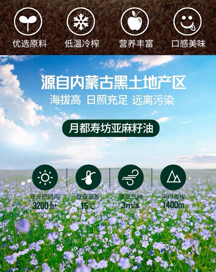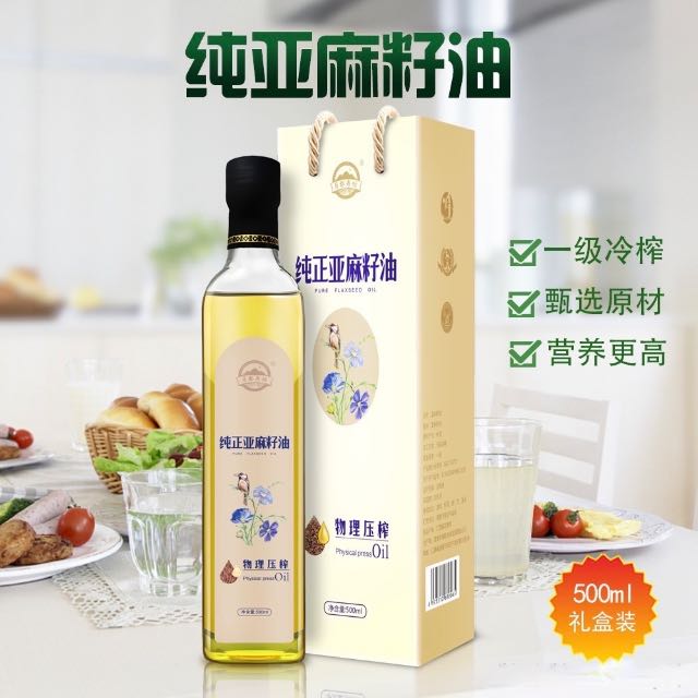 月都寿坊高omega3纯正亚麻籽油一级冷榨500ML*20瓶