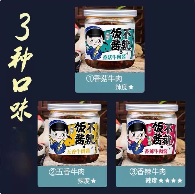 饭不酱就香菇牛肉酱五香牛肉酱香菇牛肉酱100g装各3罐共9罐