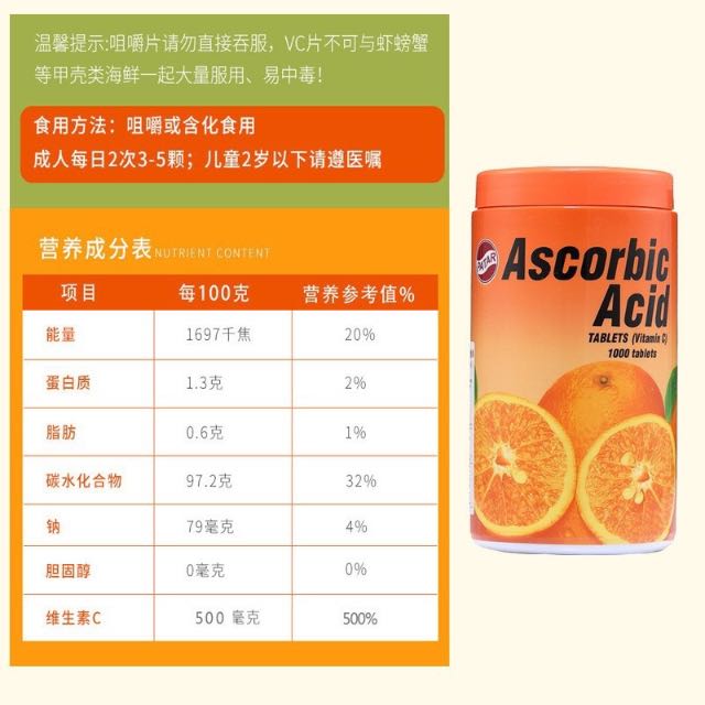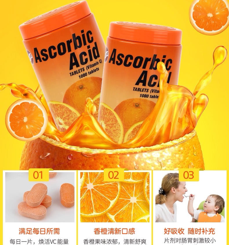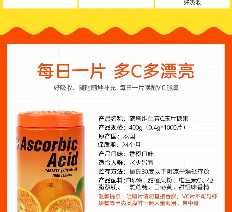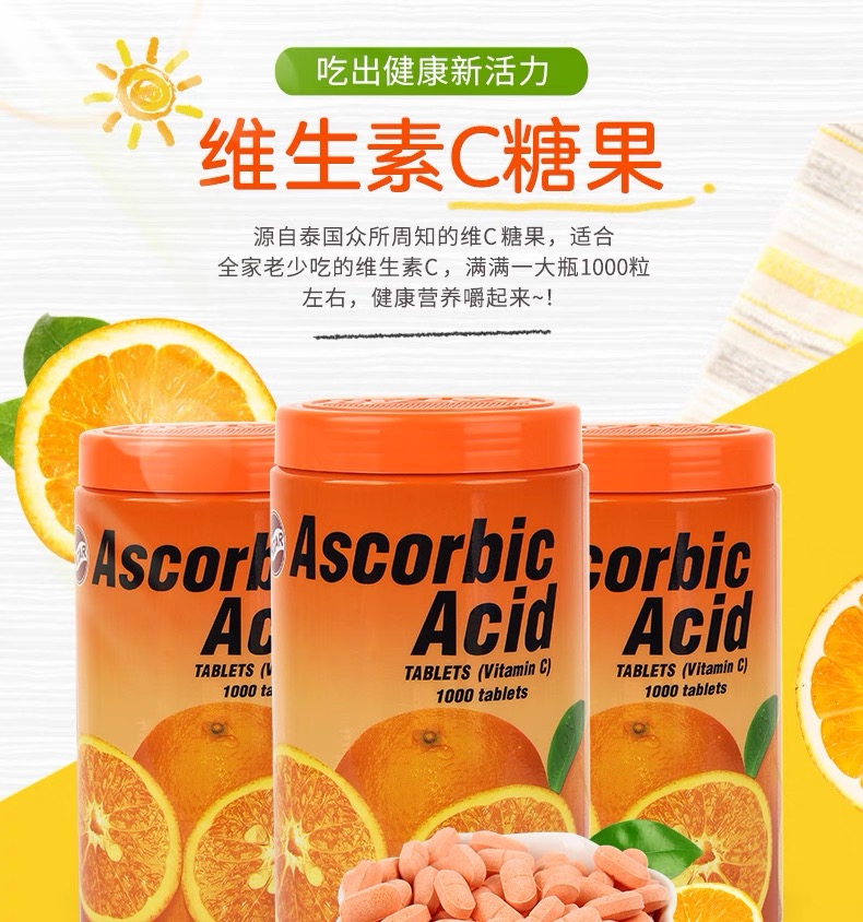 泰国PATAR维生素c咀嚼片1000粒*2瓶