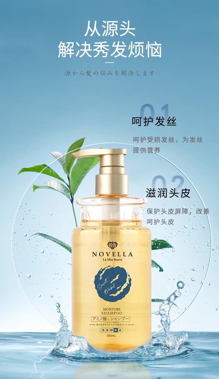 日本原装进口novella那绯澜洗发水氨基酸滋润保湿蓝风铃海盐香氛550ml*2瓶