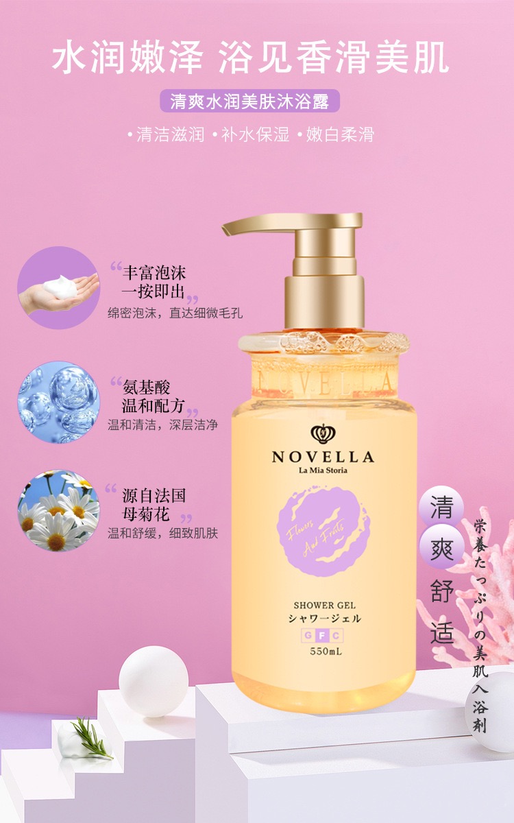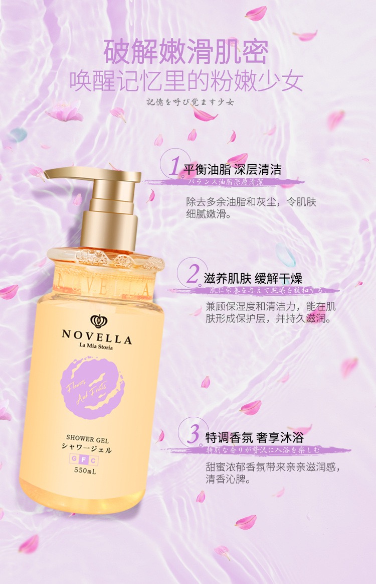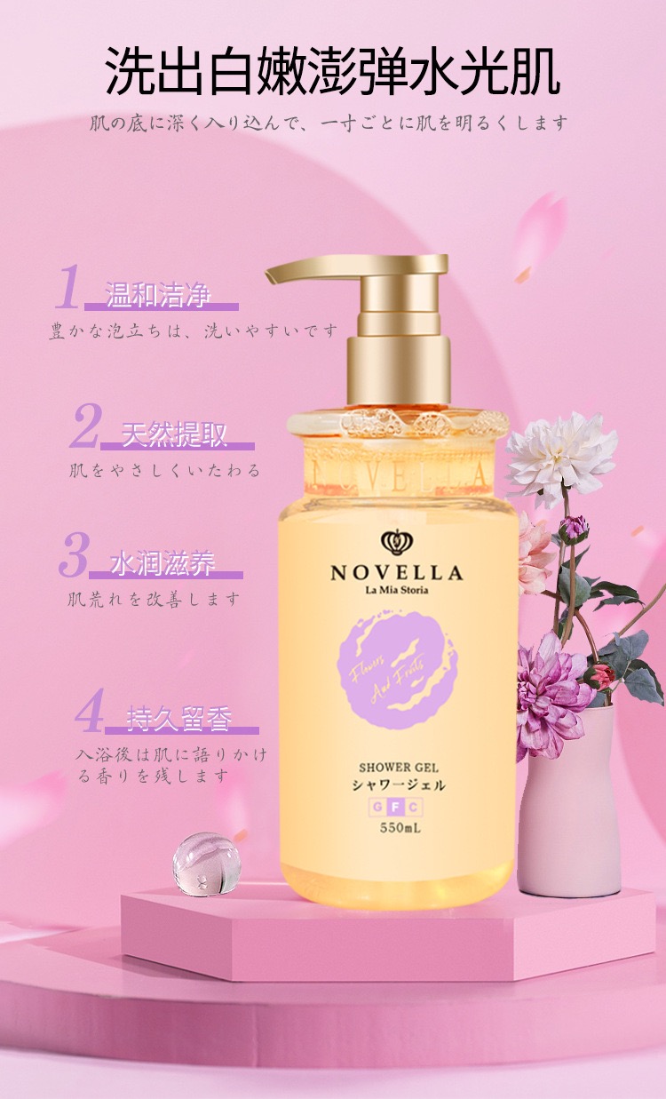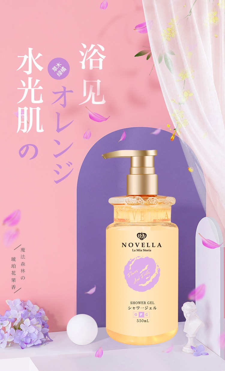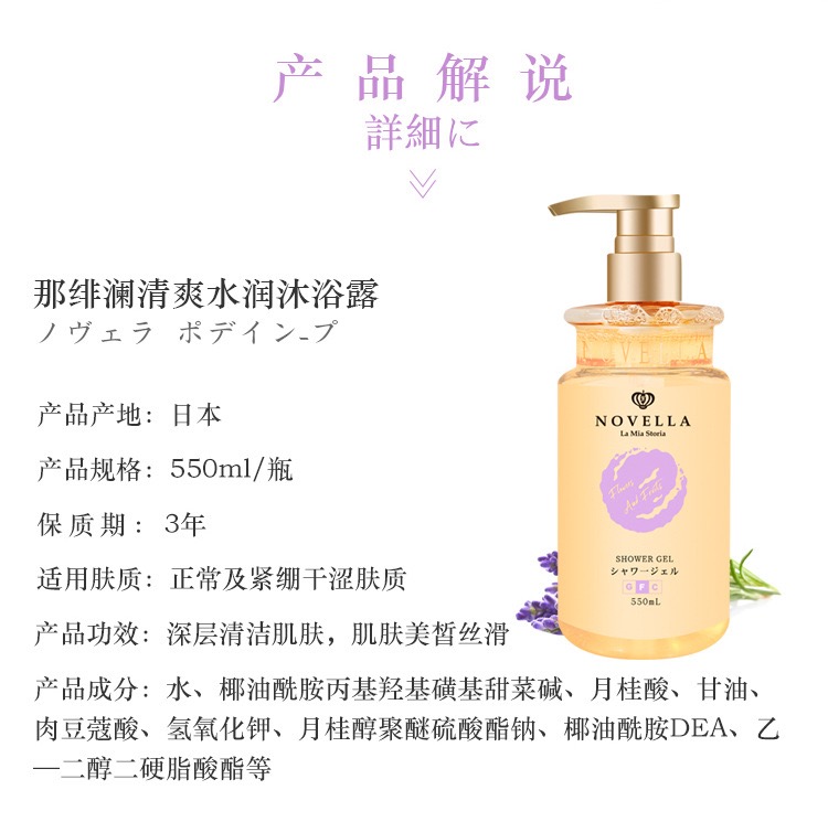 日本原装进口novella那绯澜持久留香香氛沐浴露琥珀花果香550ml*2瓶