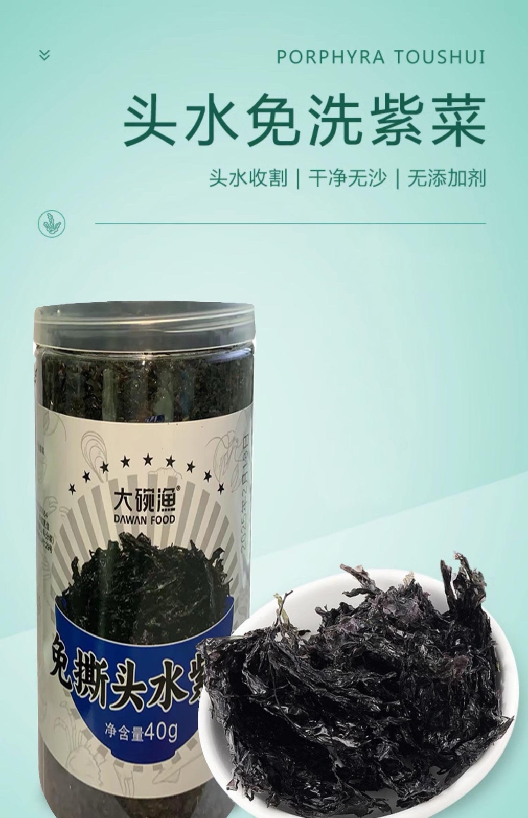 霞浦免撕免洗头水紫菜适合宝宝儿童40g*2罐