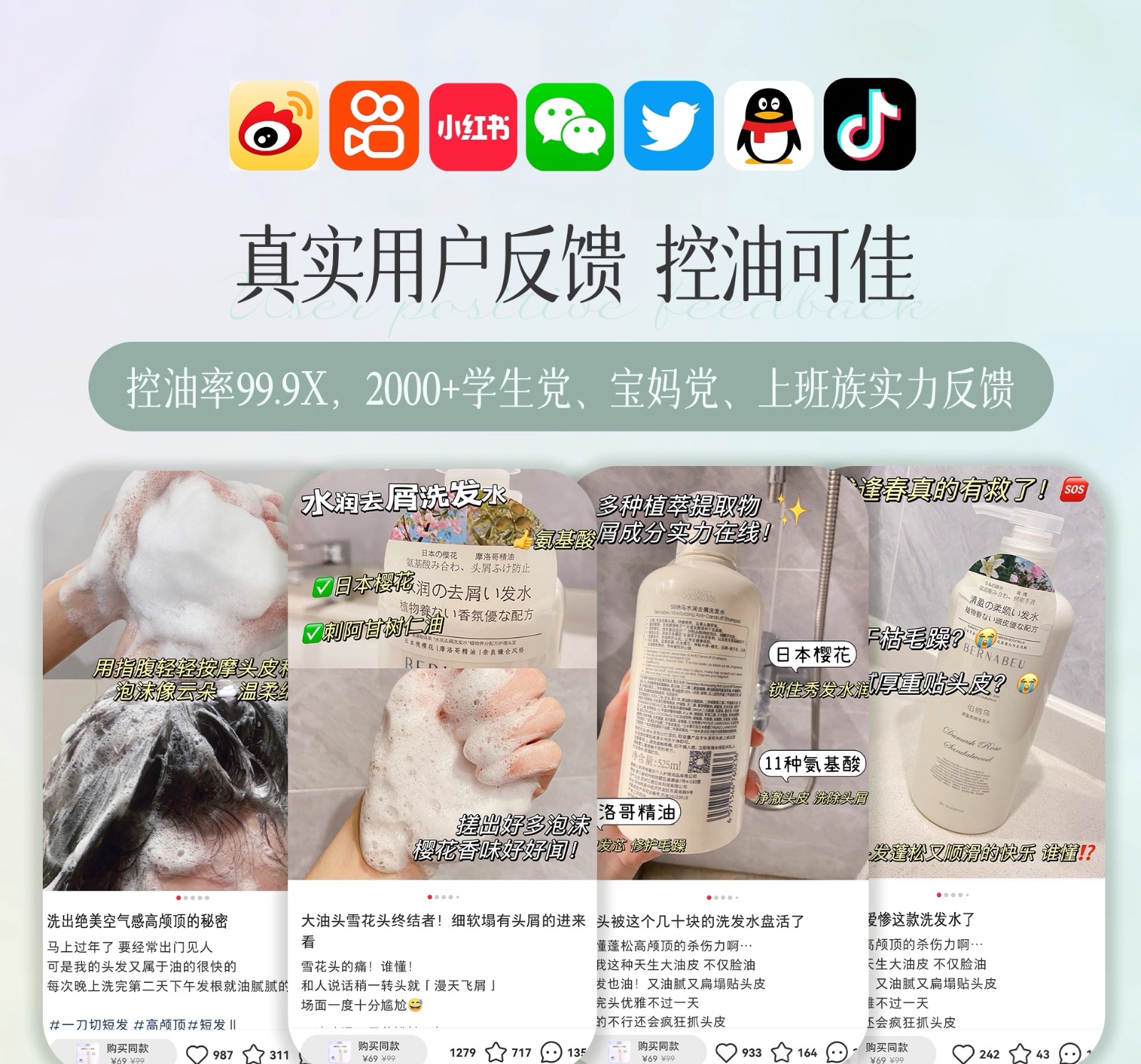 胖东来爆款伯纳乌水润去屑洗发水525ml*2瓶