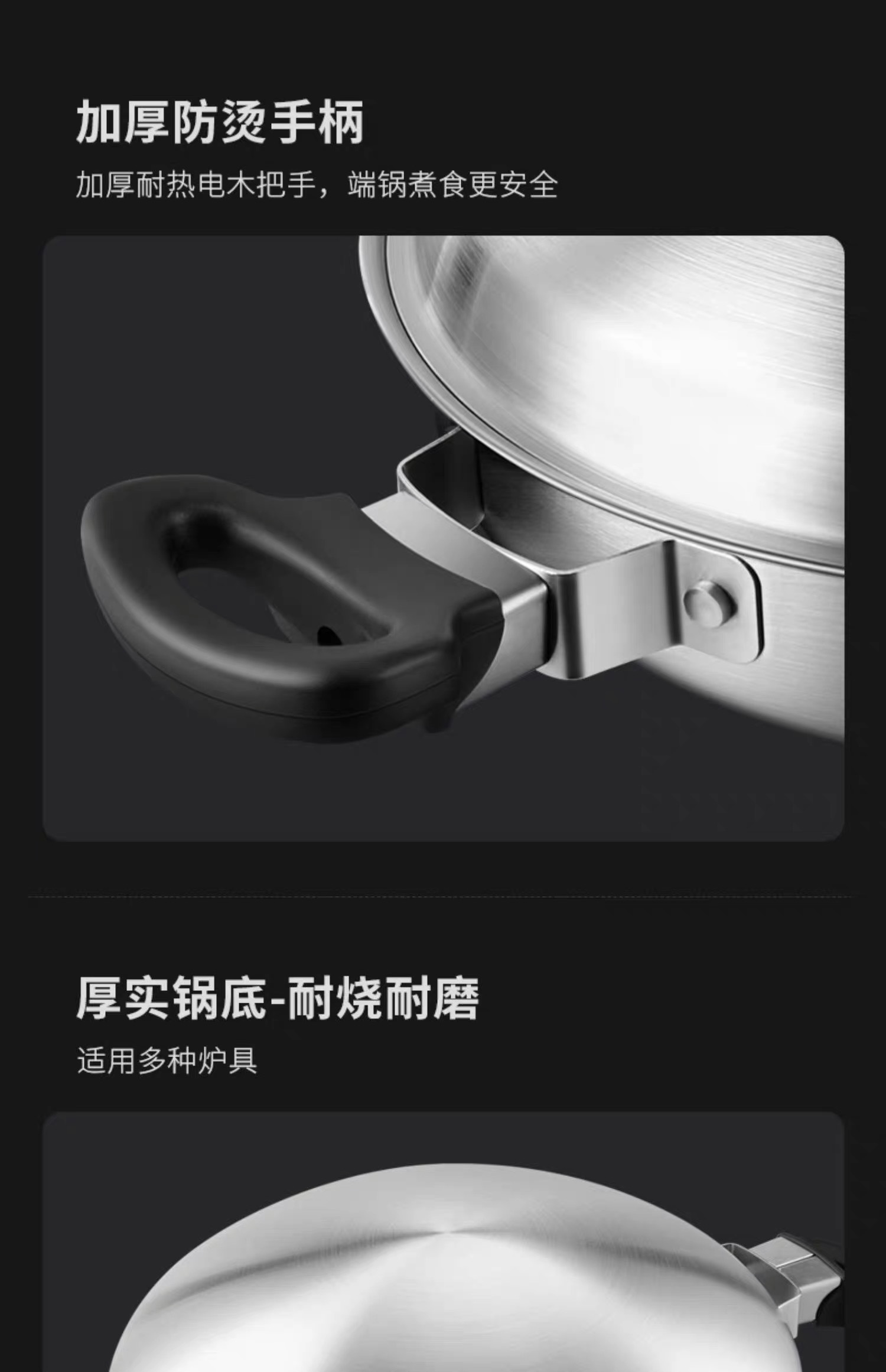 铿锵安利皇后锅304不锈钢炒锅中式家用无水火锅36CM平底七层锅