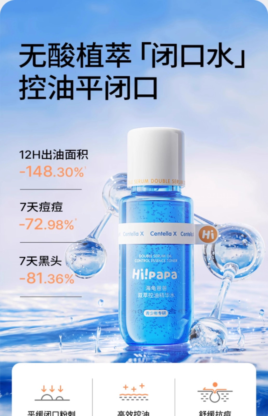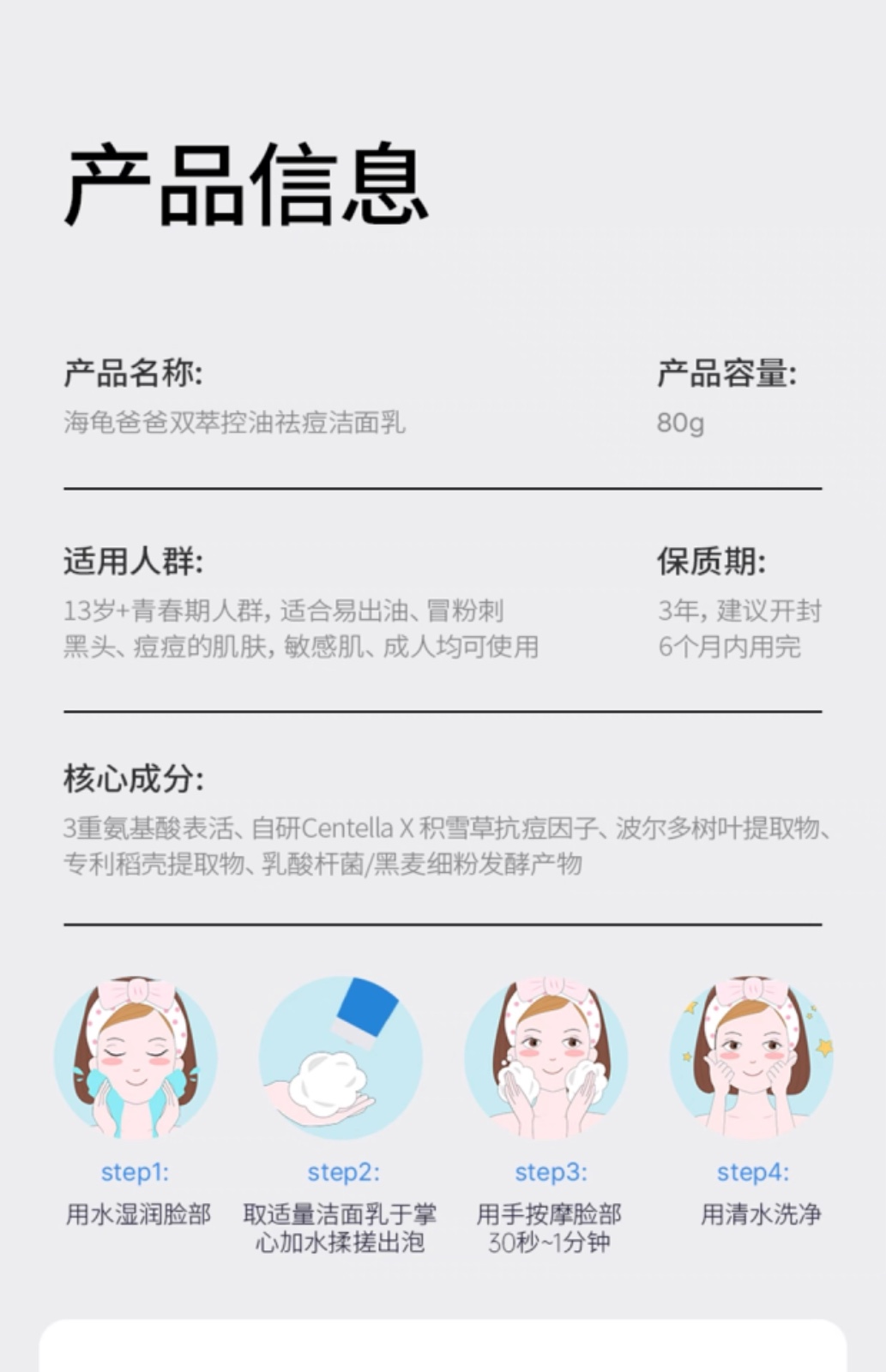 海龟爸爸青少年祛痘2件套洁面乳80g+闭口水150ml