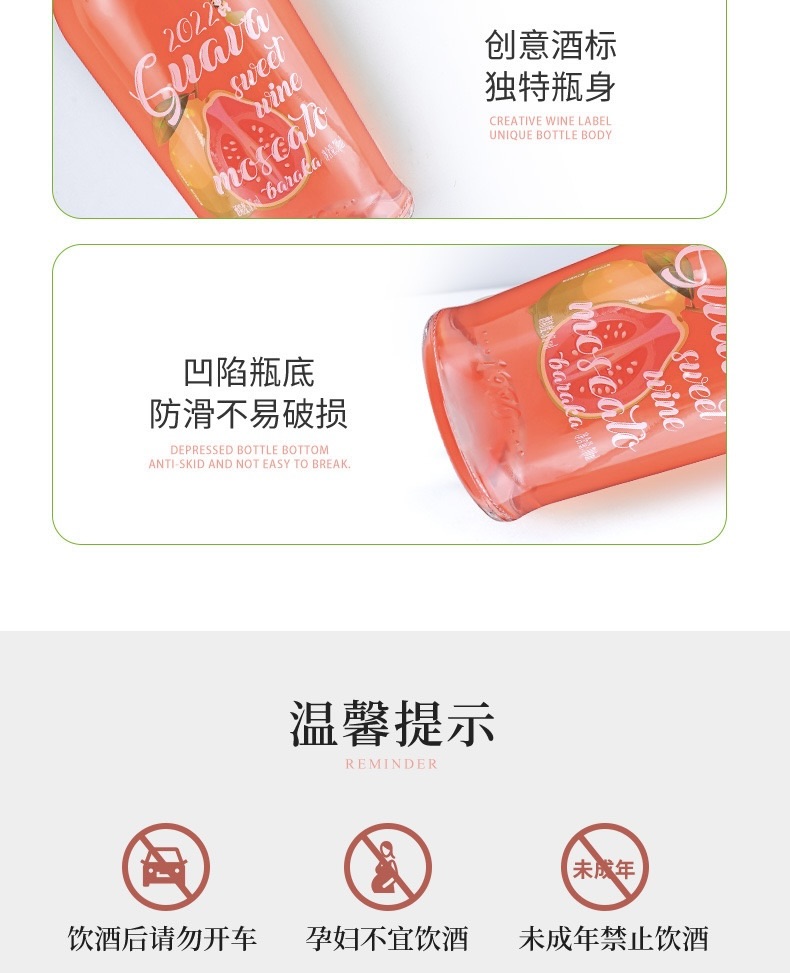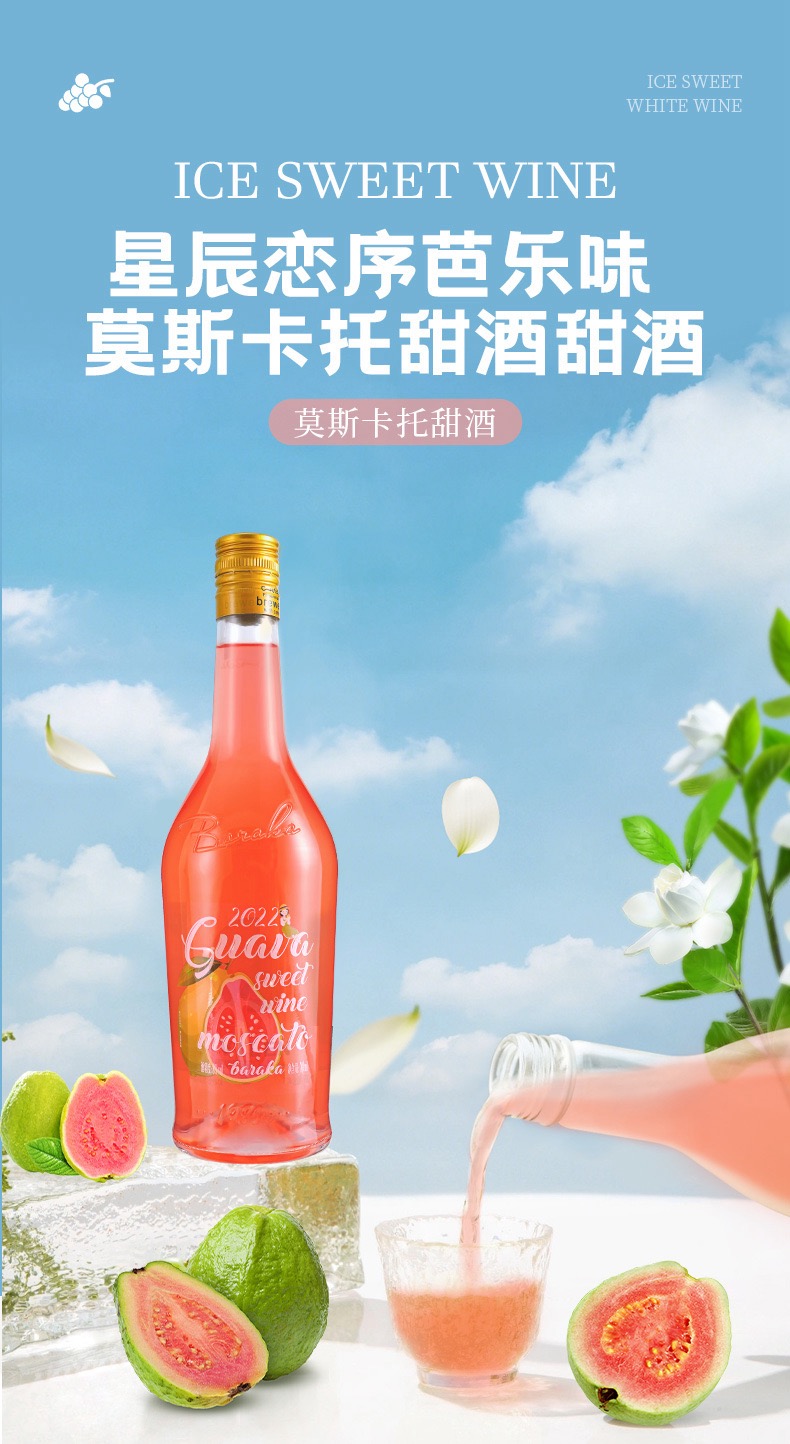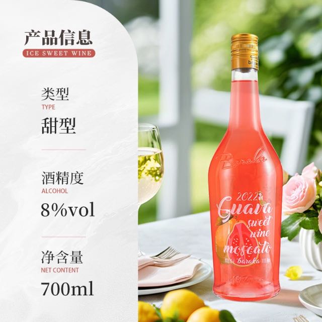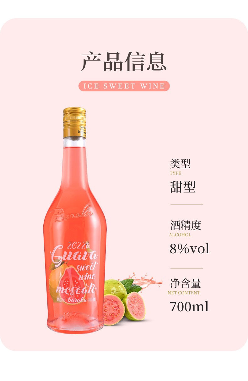 红心芭乐莫斯卡托甜白葡萄酒女士晚安酒甜型果酒700ml*2瓶