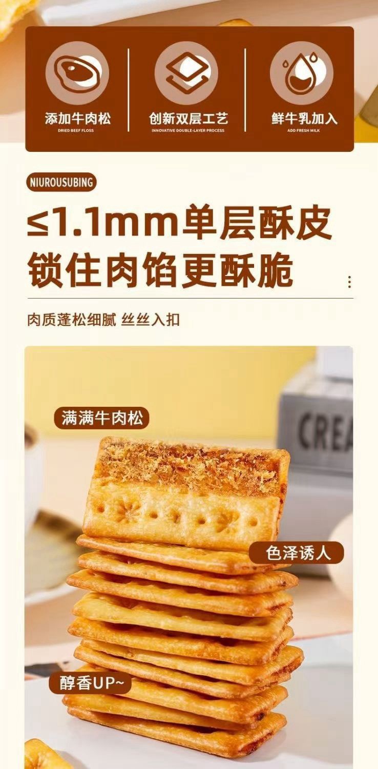 永得利牛肉陷双层饼干咸香酥脆层层薄脆独立包装礼盒装230g*3盒