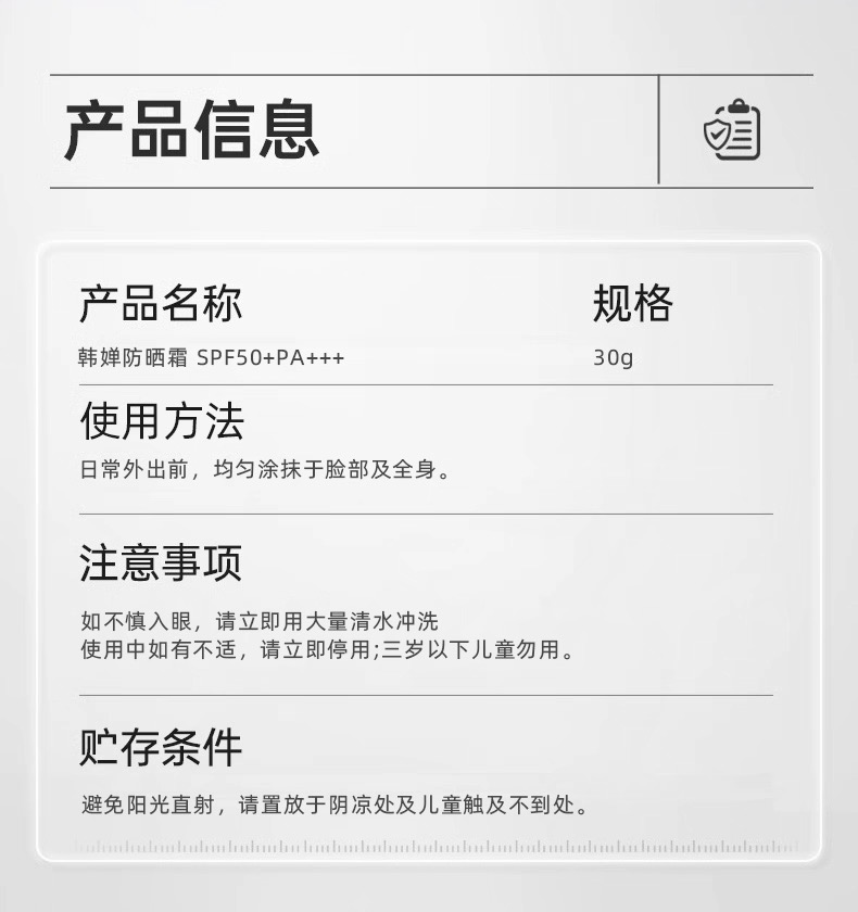 致朵韩婵防晒霜SPF50+PA+++30g(白金款)