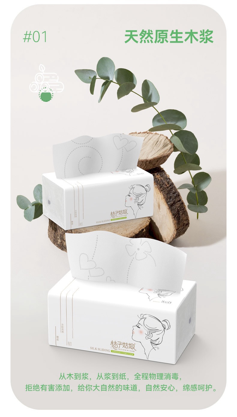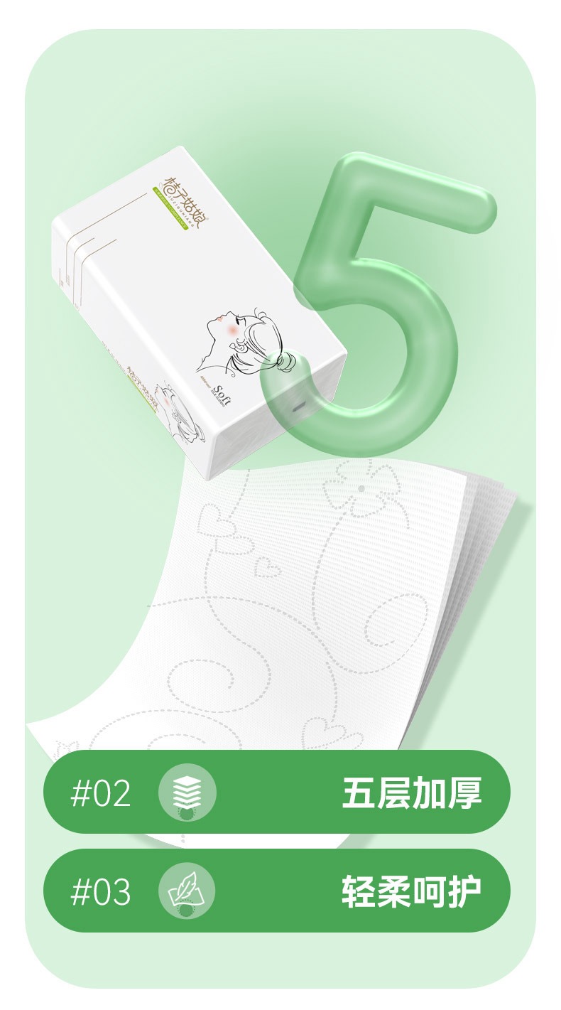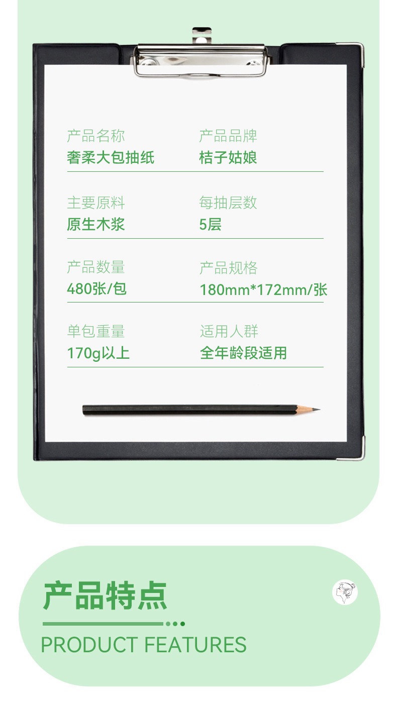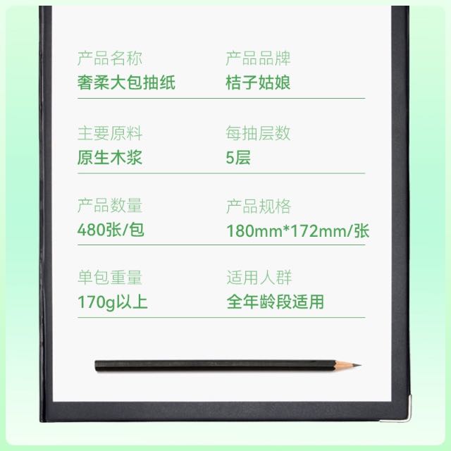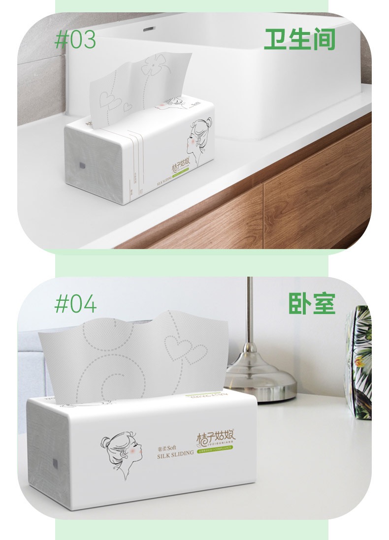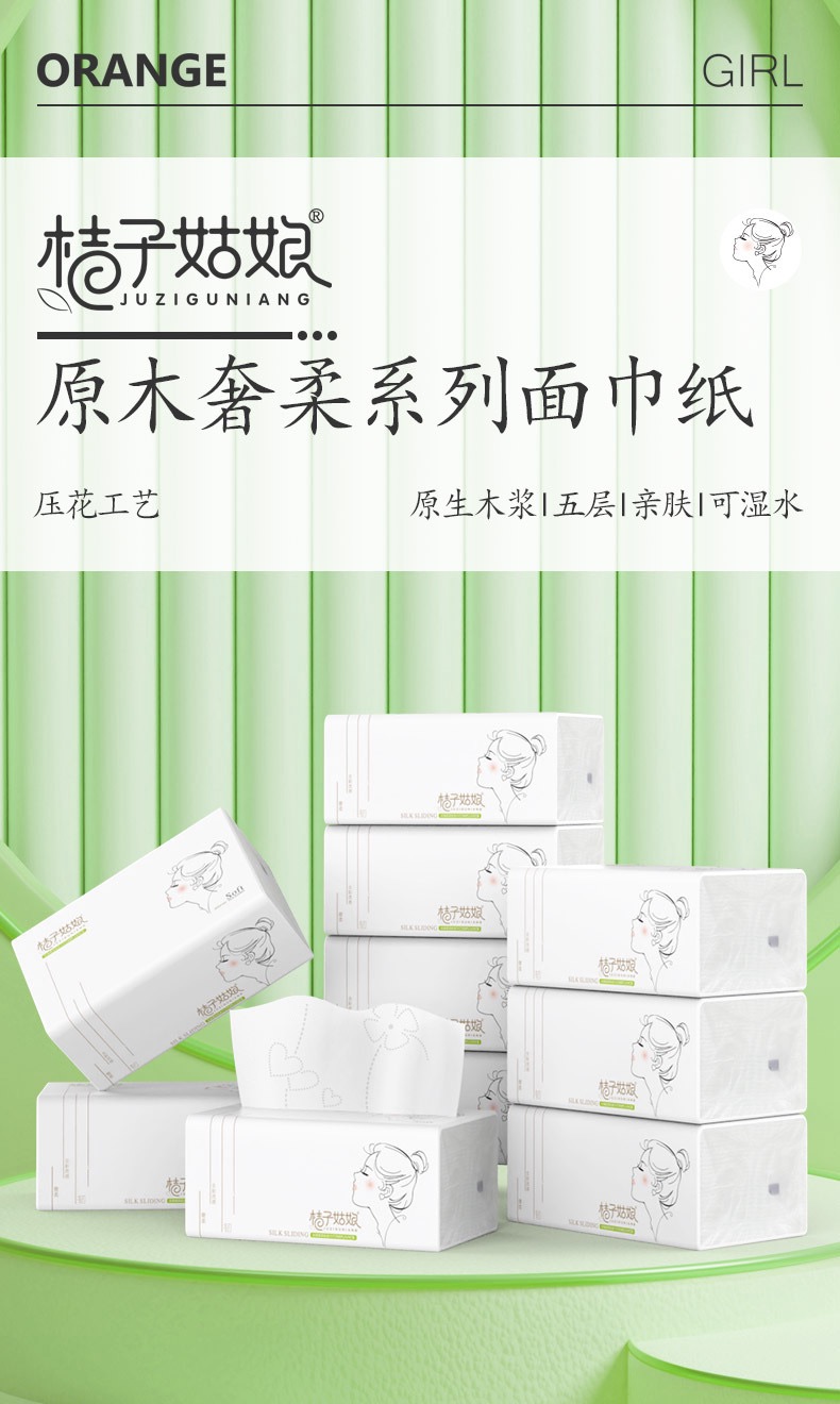 桔子姑娘原生木浆大号抽纸180*172mm*5层*96抽/包整箱20包