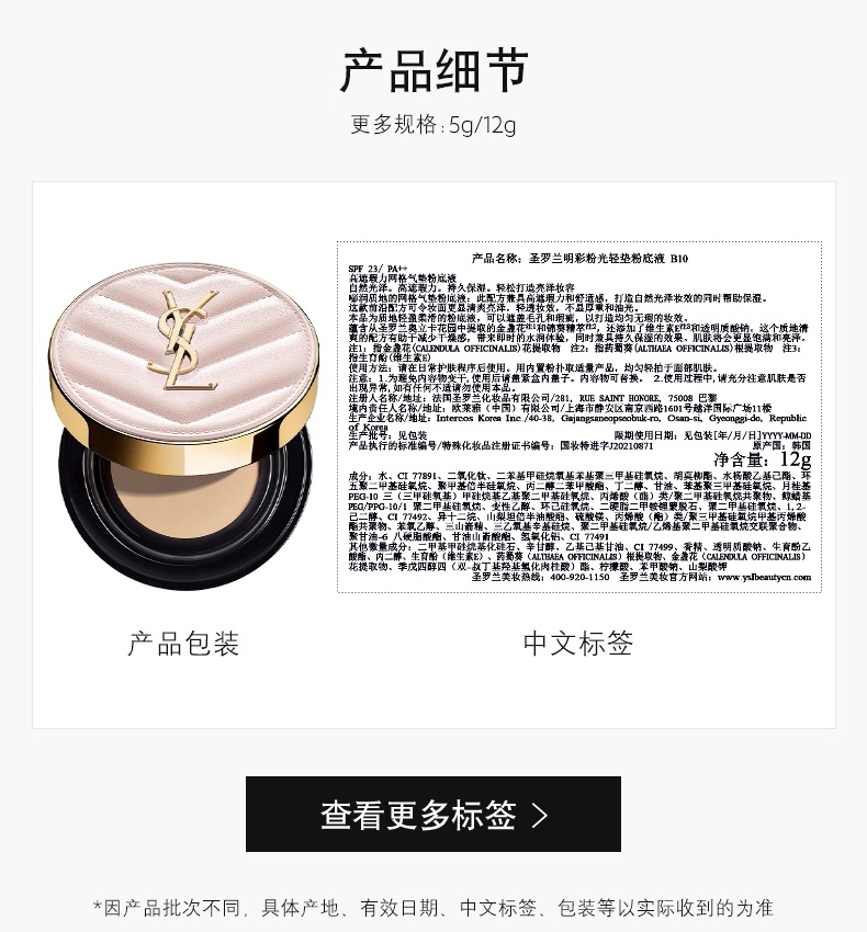 YSL圣罗兰粉皮革气垫B10/B20(二选一)