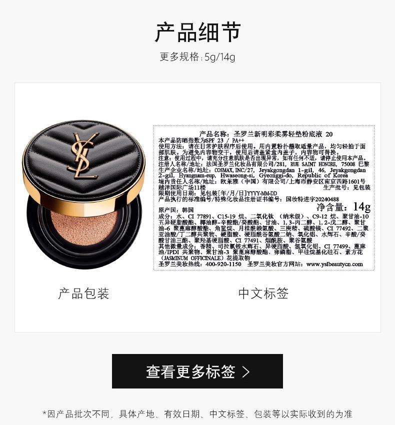 YSL圣罗兰黑皮革气垫B10/B20(二选一)