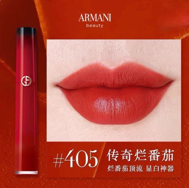 阿玛尼红管唇釉405烂番茄色丝绒哑光显白