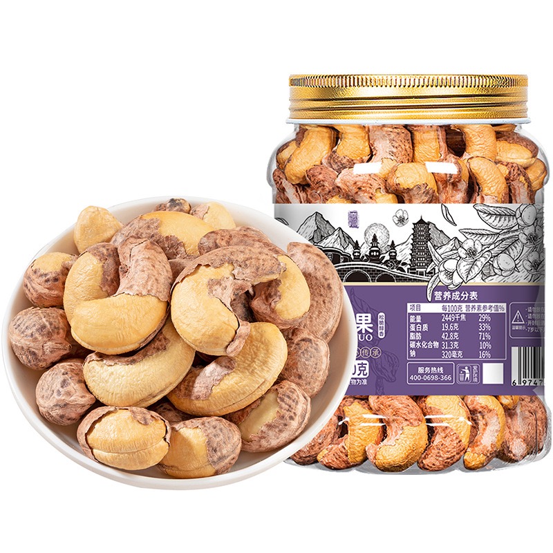 越南盐焗紫衣腰果特大颗粒原味500g*2罐