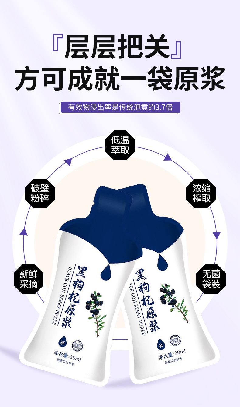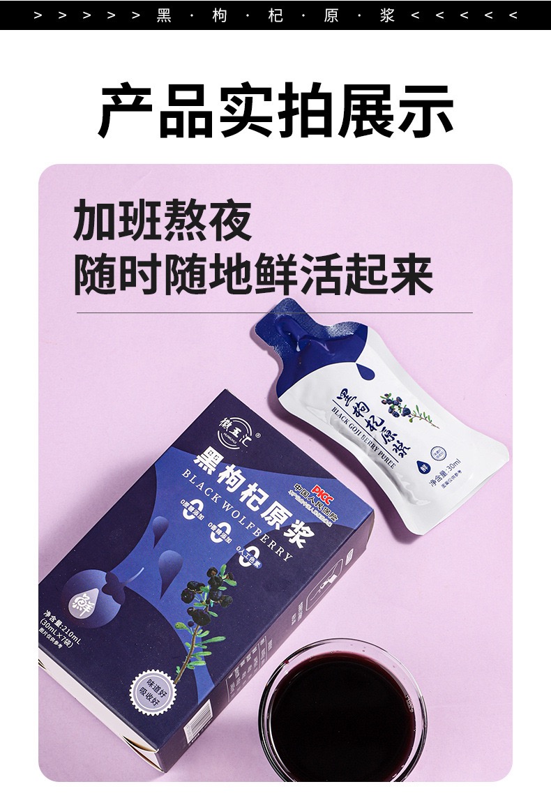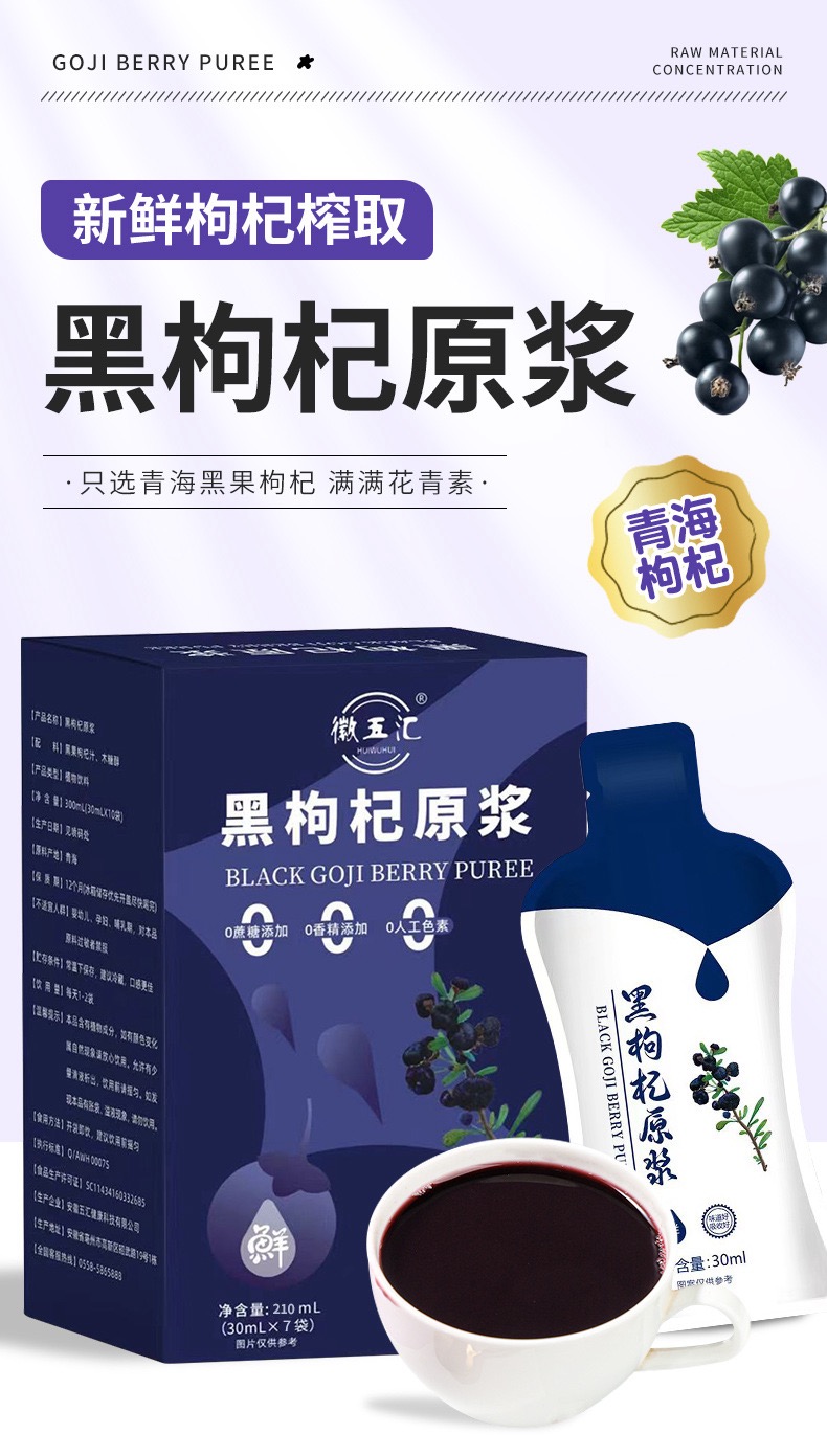 【徽五汇】正宗青海黑枸杞原浆100%鲜榨30ml*7袋/盒不加一滴水4盒