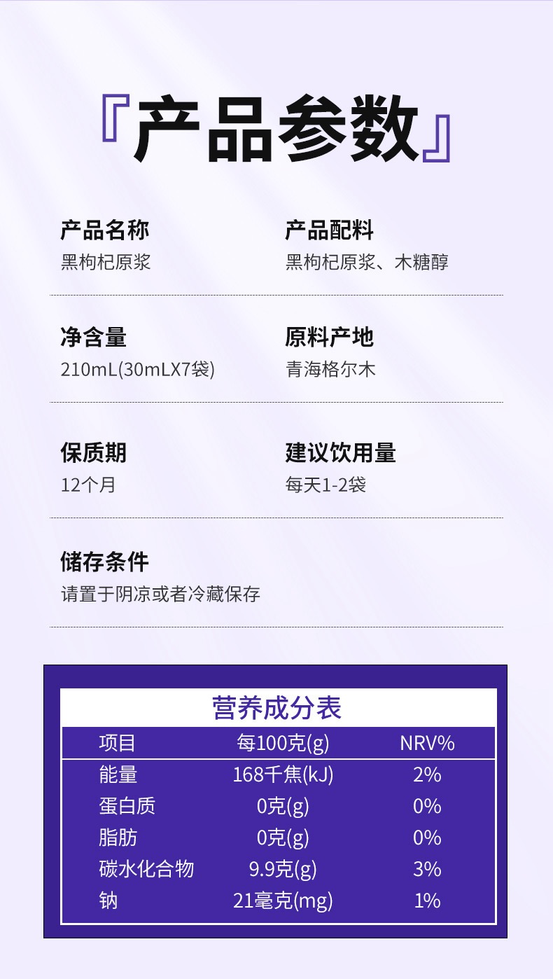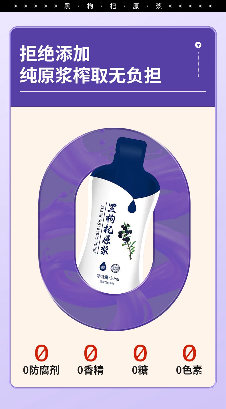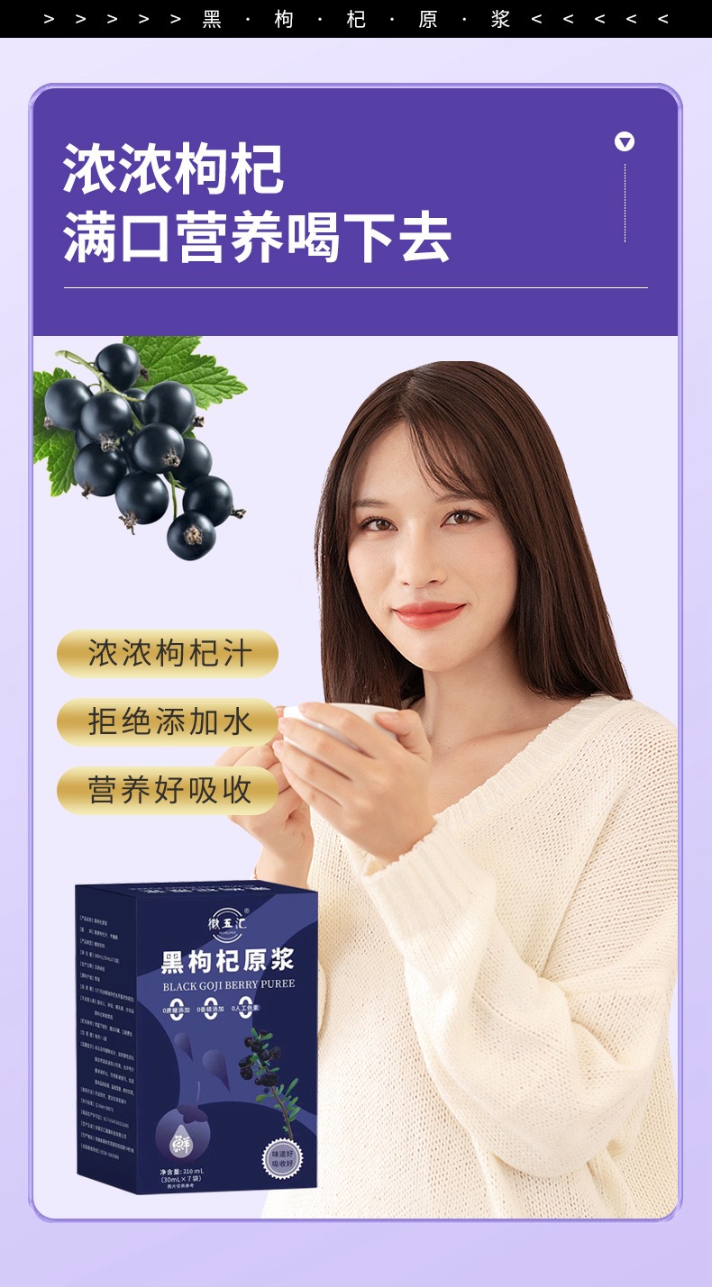 【徽五汇】正宗青海黑枸杞原浆100%鲜榨30ml*7袋/盒不加一滴水4盒