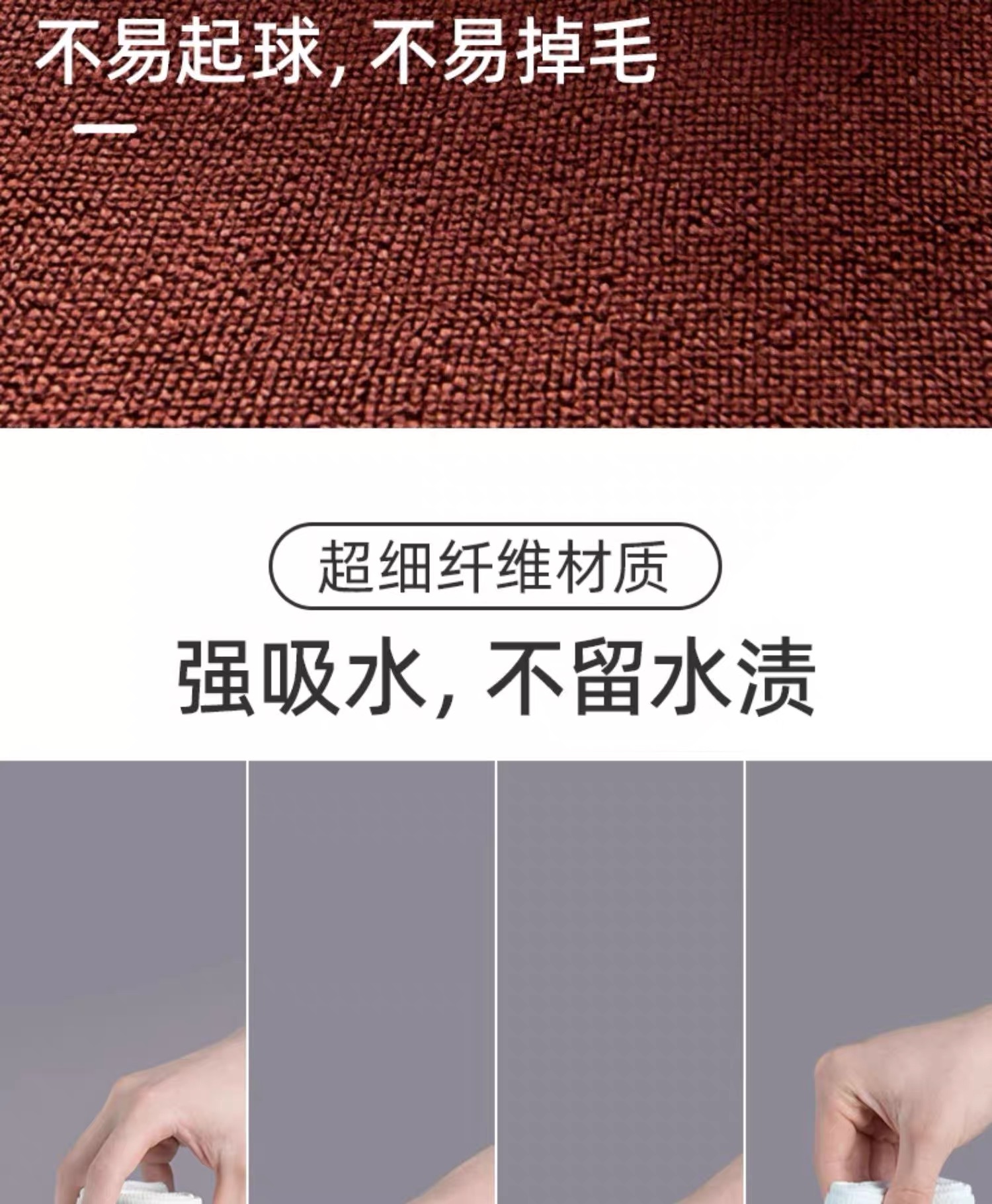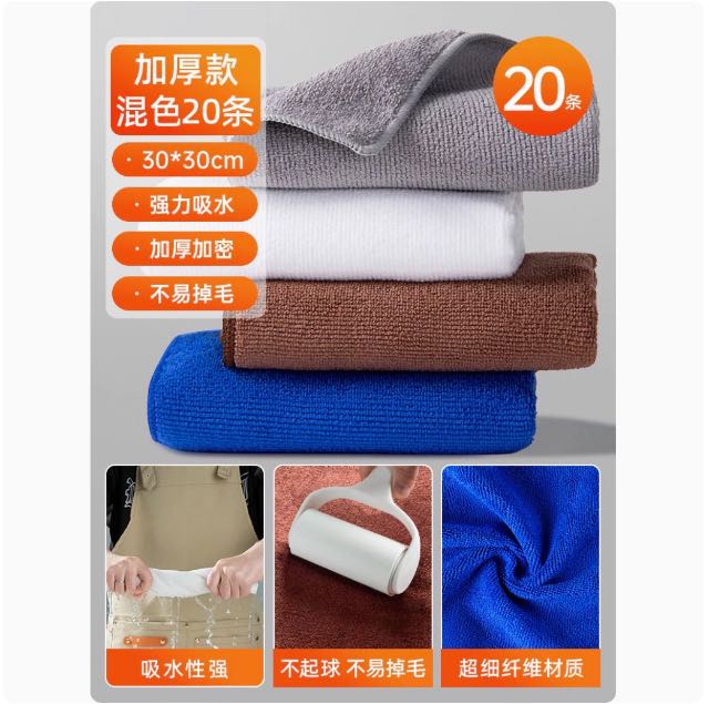 保洁专用超细纤维抹布超吸水不易掉毛30*30cm4色共20条