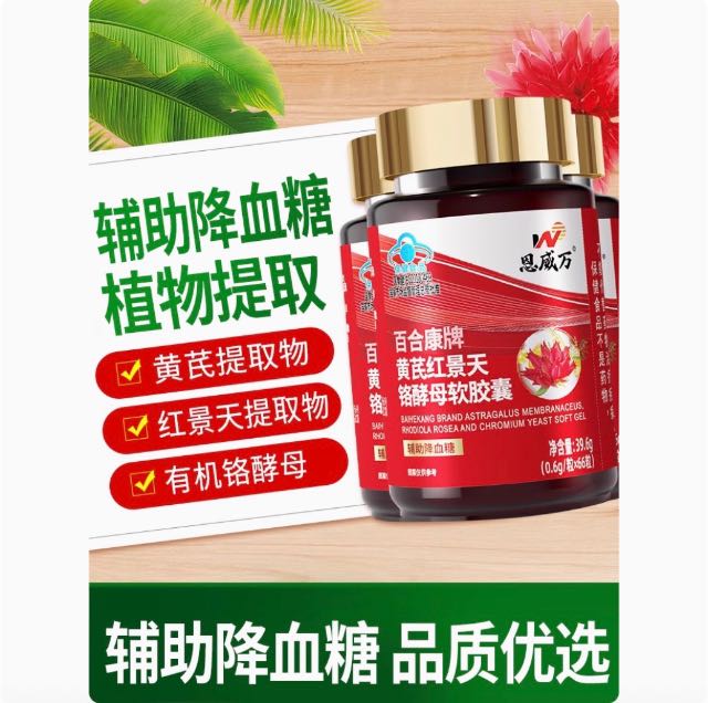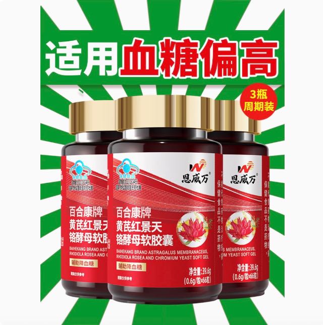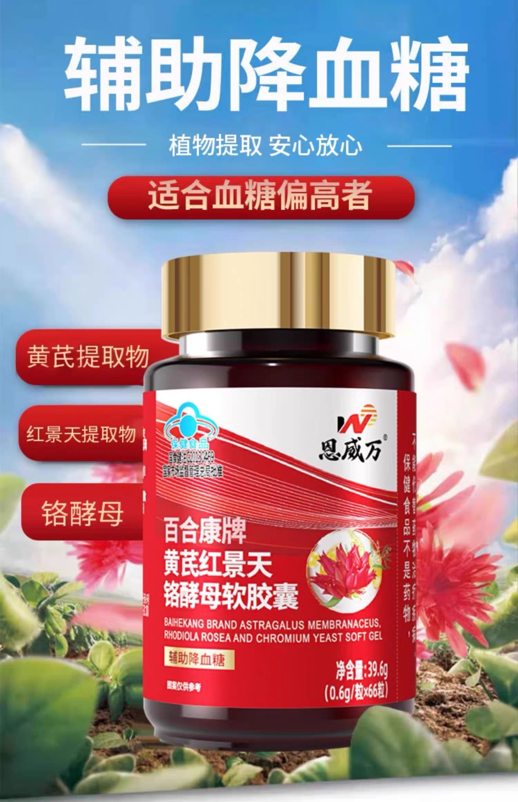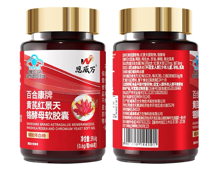 恩威万®百合康牌黄芪红景天铬酵母软胶囊【66粒】3瓶装