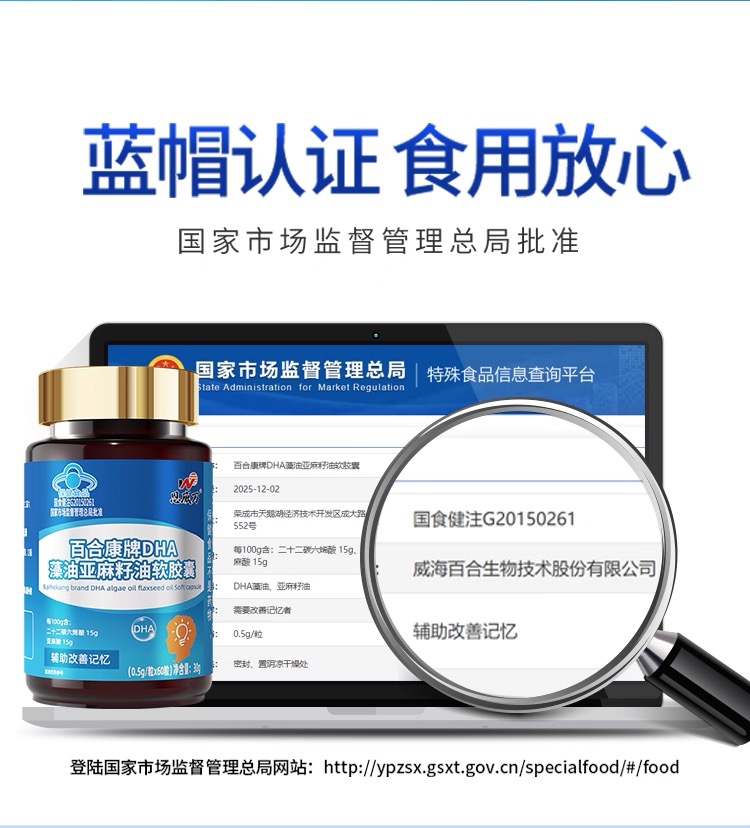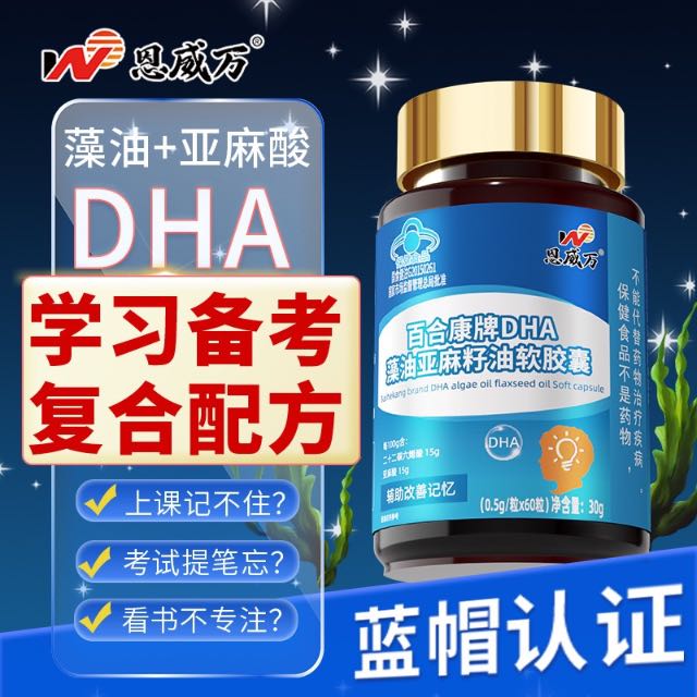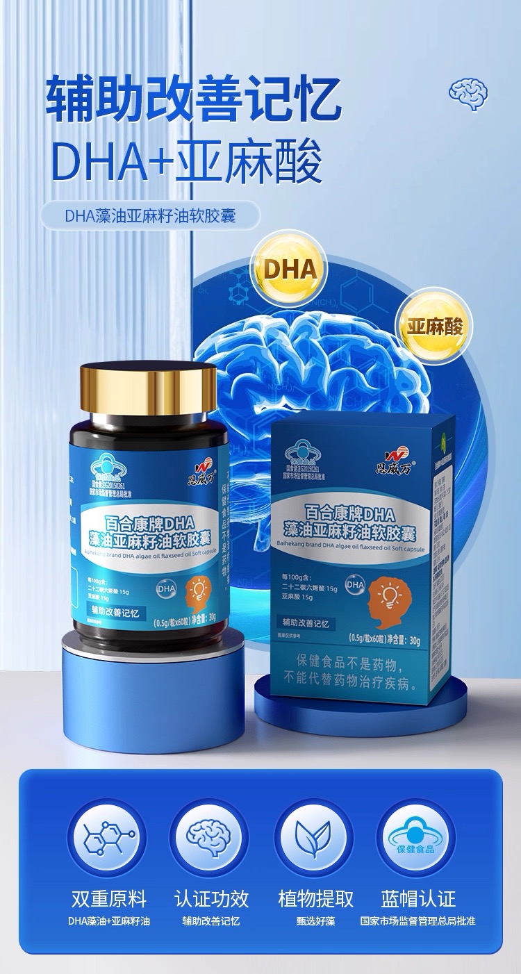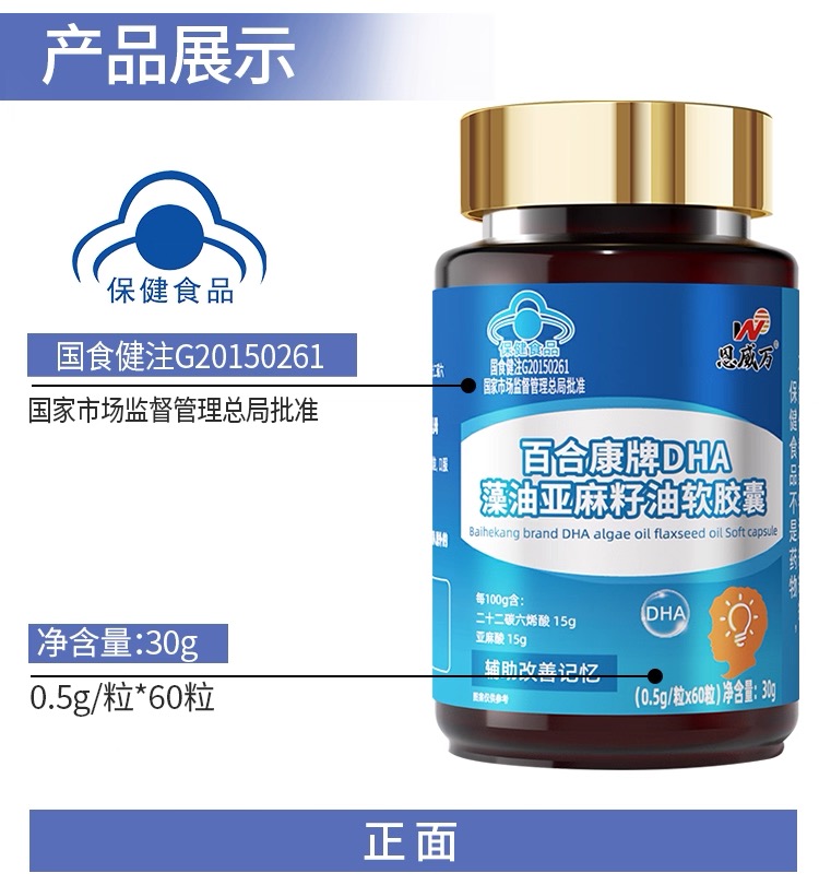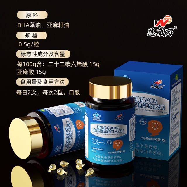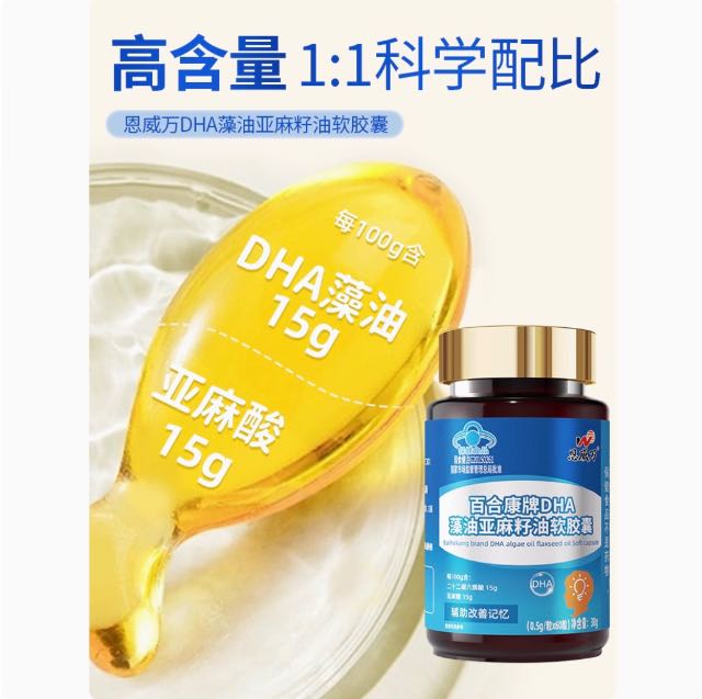 恩威万®百合康牌DHA藻油亚麻籽油软胶囊【60粒】3瓶