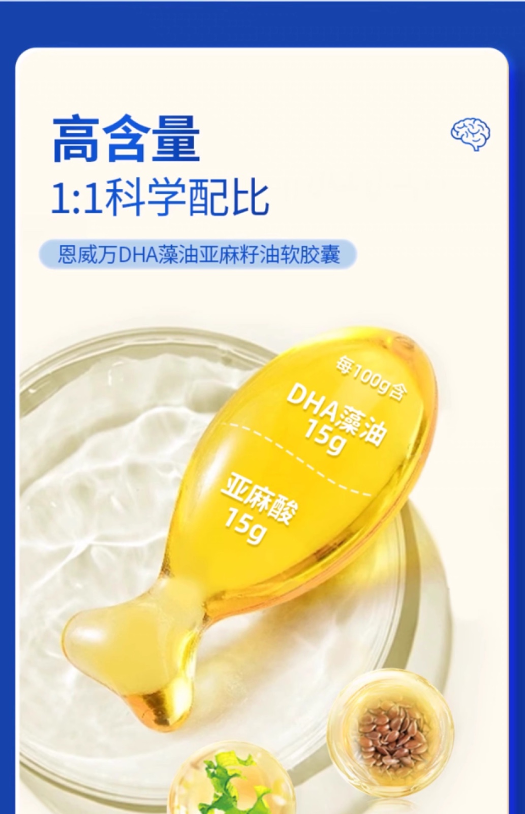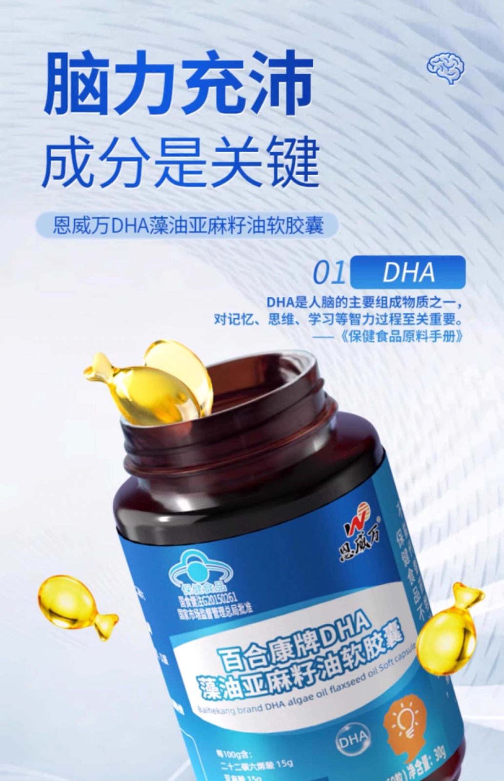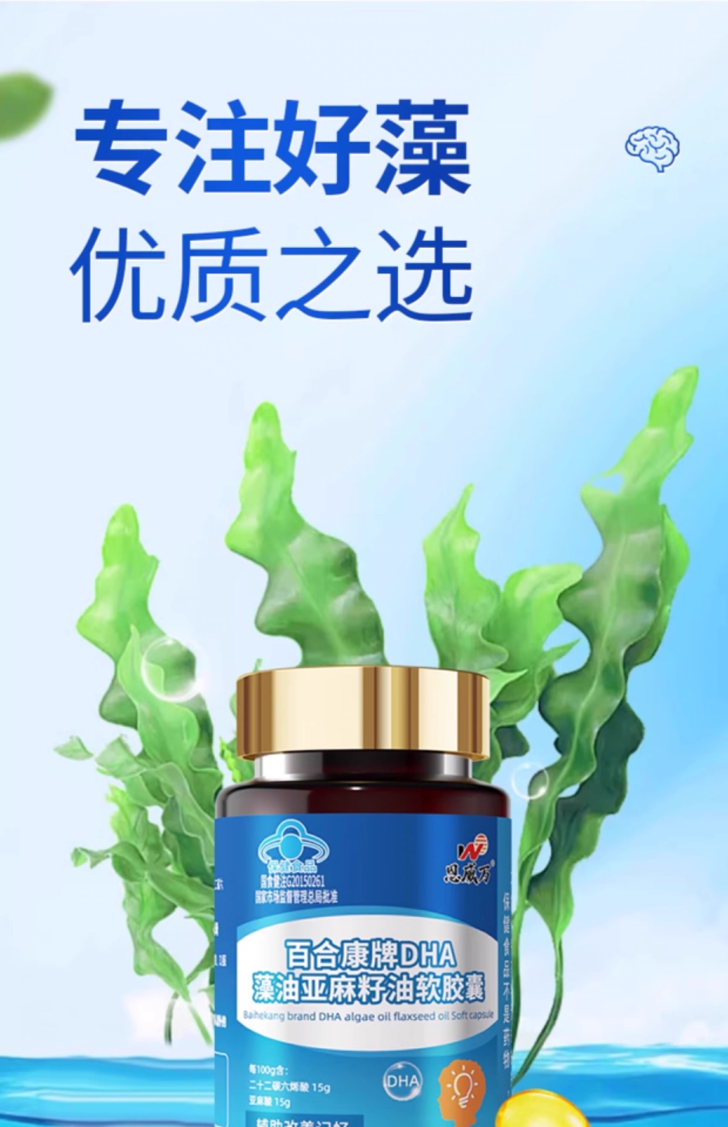 恩威万®百合康牌DHA藻油亚麻籽油软胶囊【60粒】3瓶
