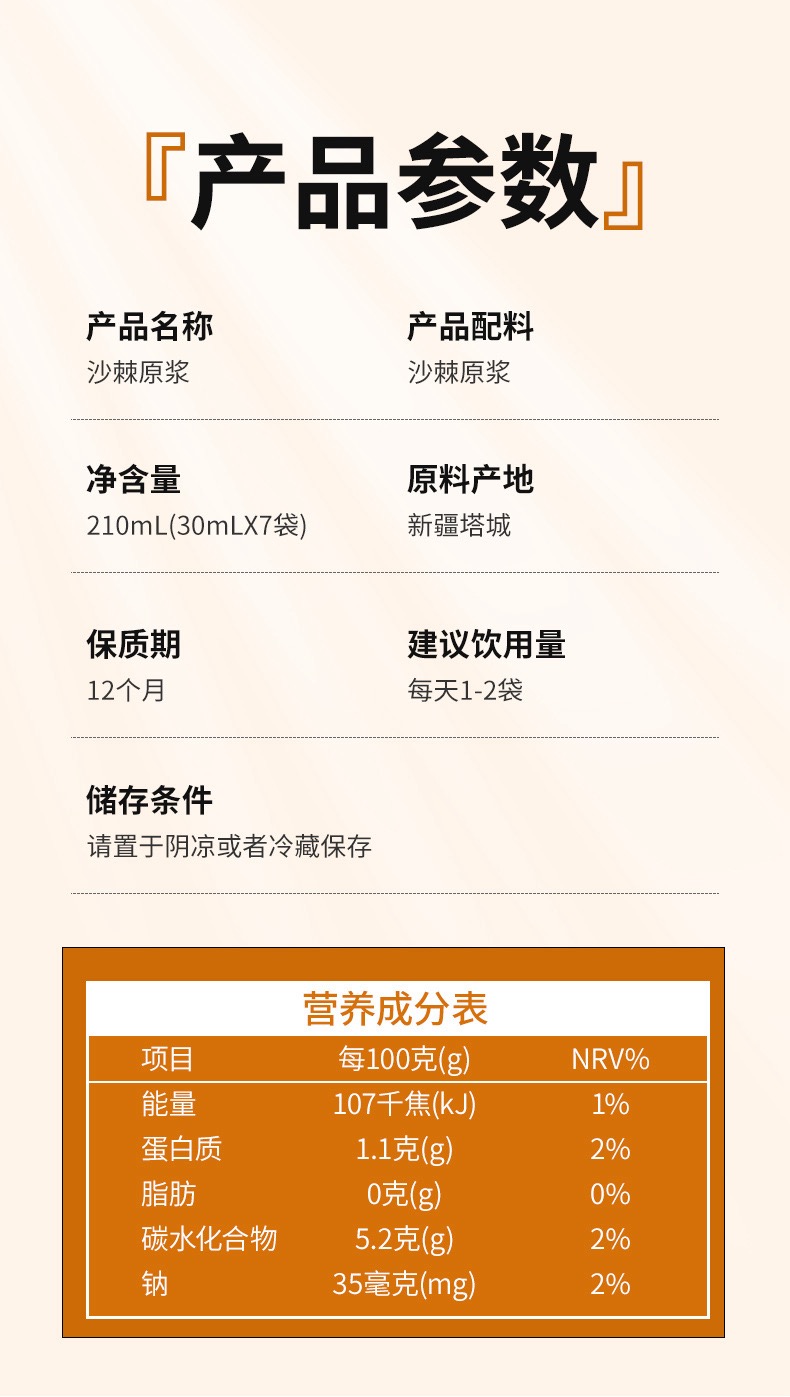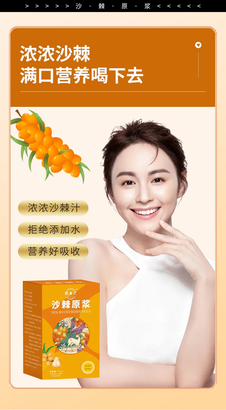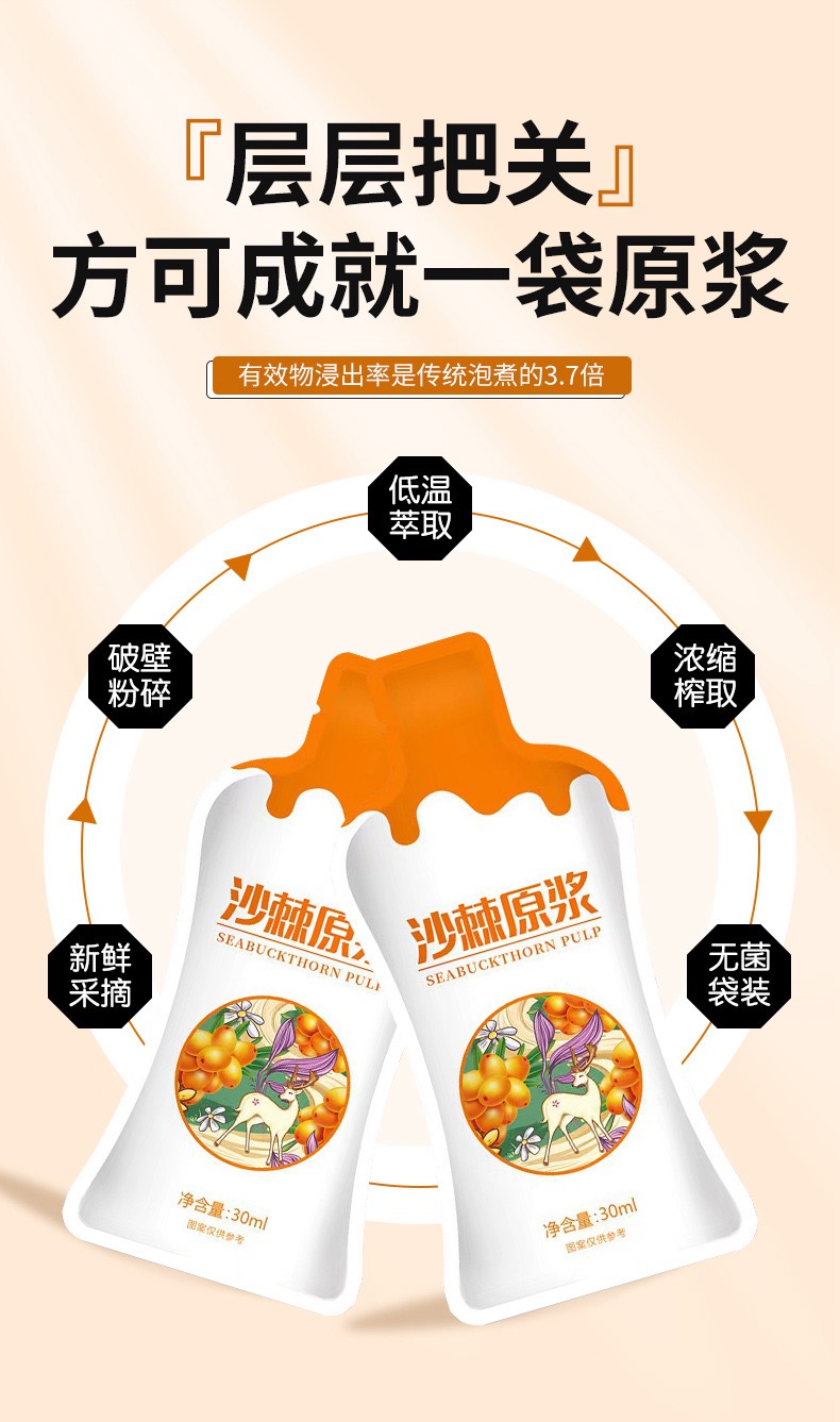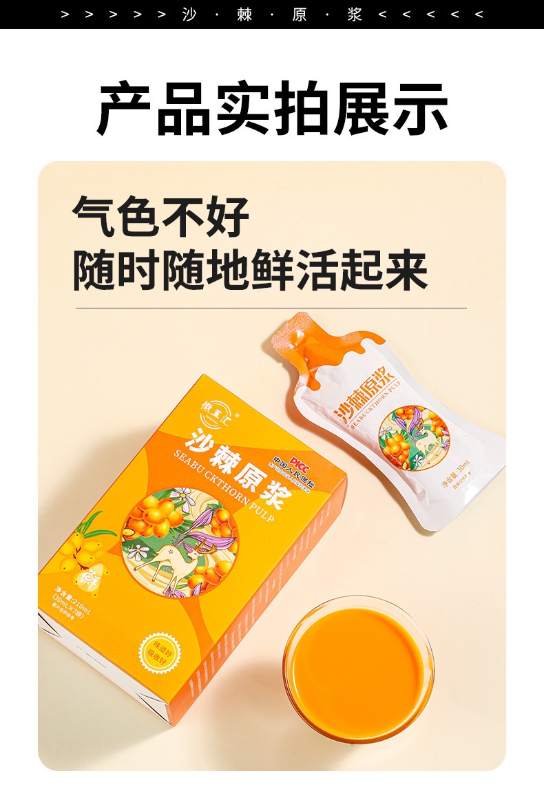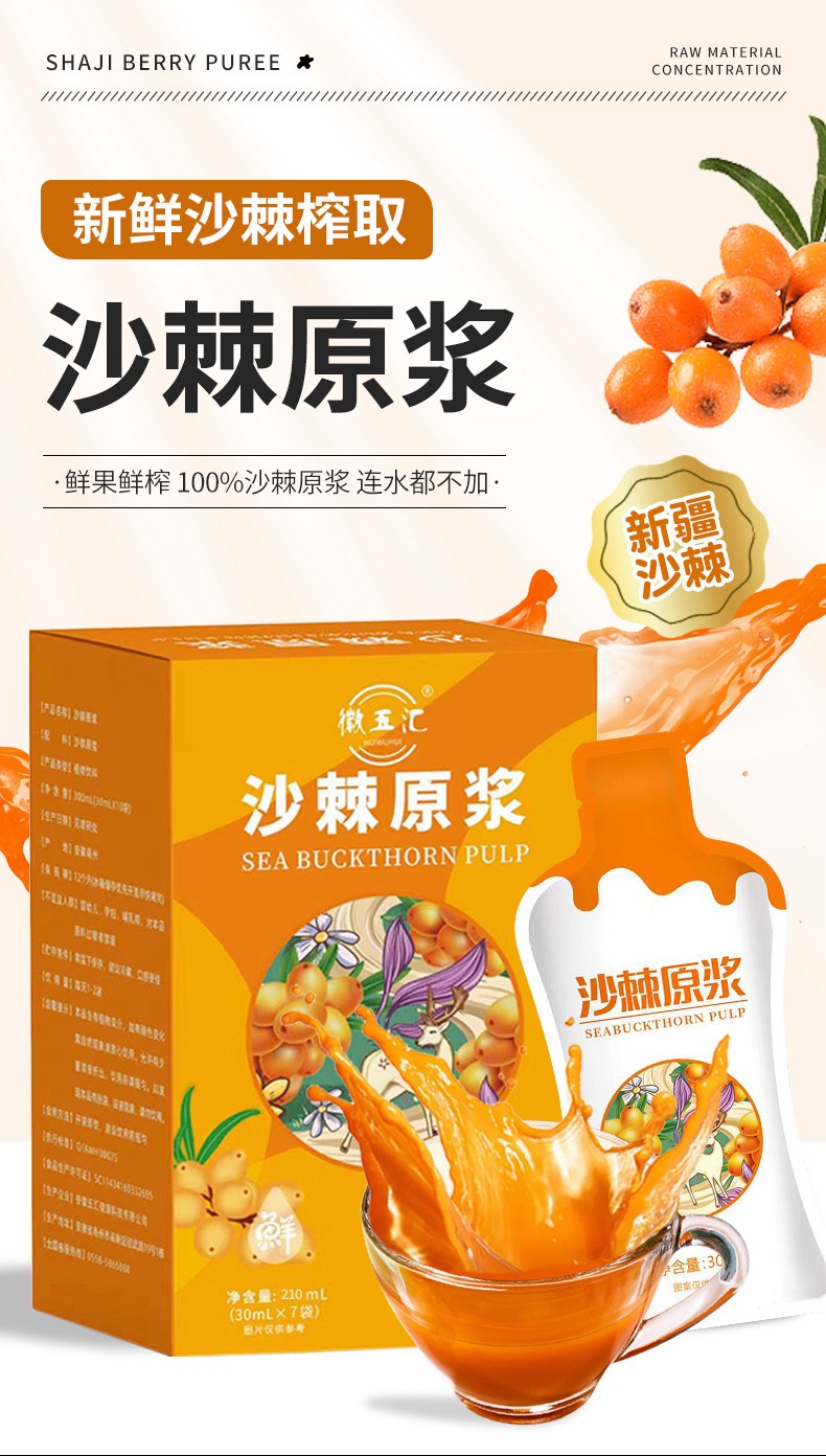 【徽五汇】新疆沙棘原浆30ml*7袋/盒鲜榨便携沙棘汁0添加VC之王4盒