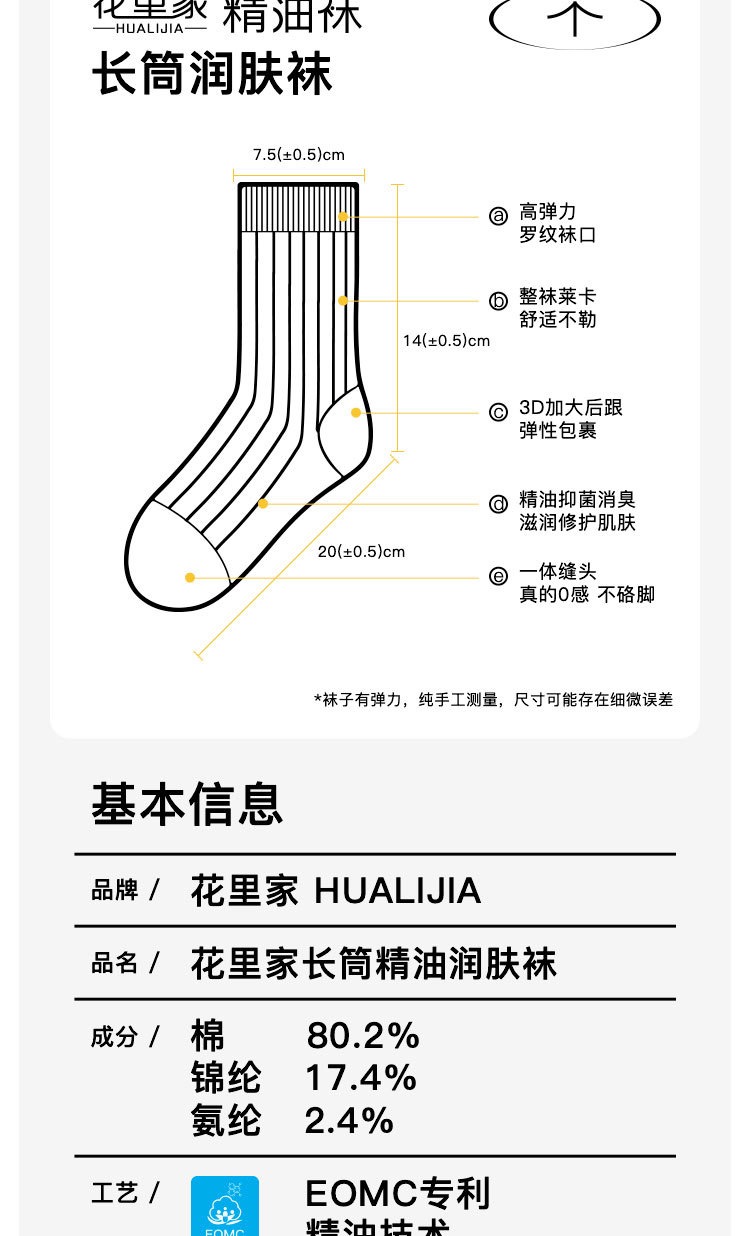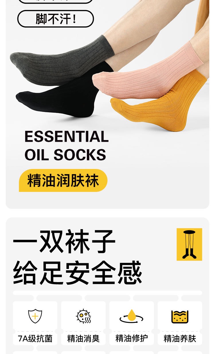 花里家7A抗菌防臭精油袜(35-45码可穿)四季润肤棉袜5双精品礼盒装
