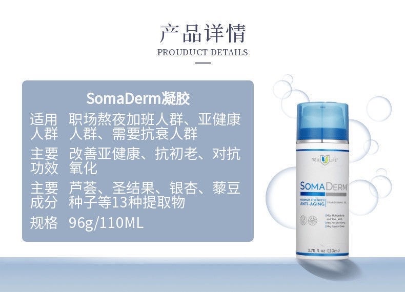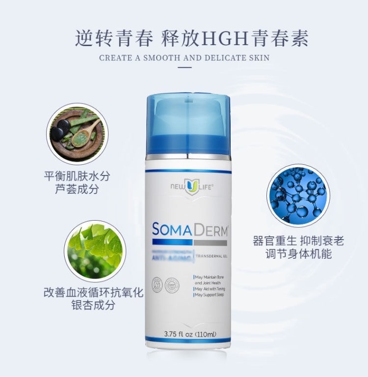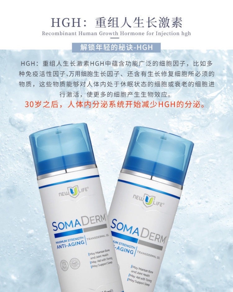 美国hgh新生命凝胶正品 NewULife人体生长素somaderm保湿凝胶【港版100ML】