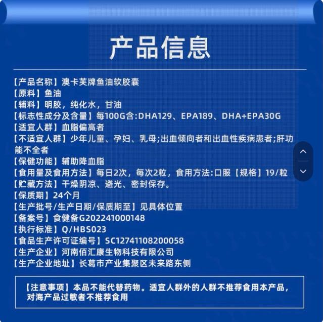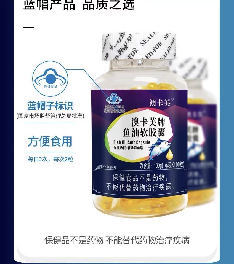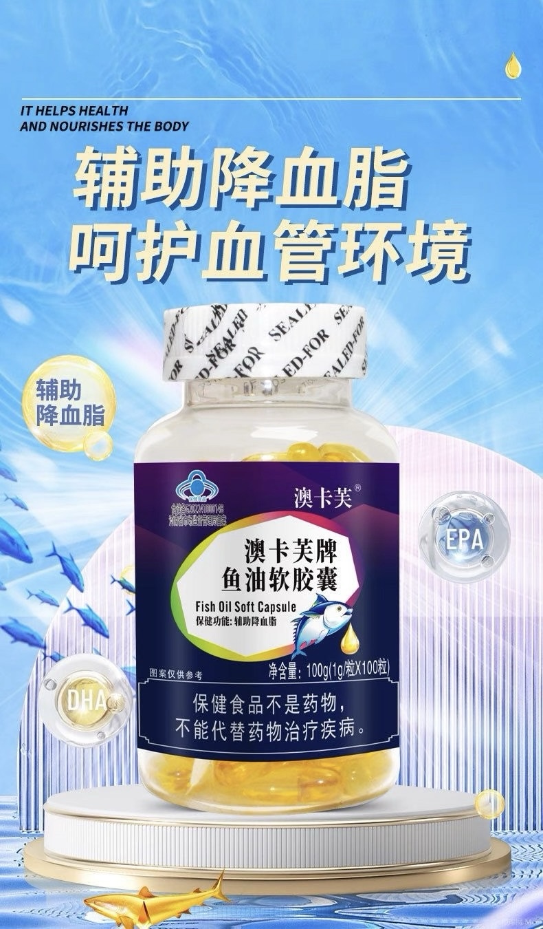 澳卡芙深海鱼油软胶囊中老年辅助降血脂【100粒】10瓶