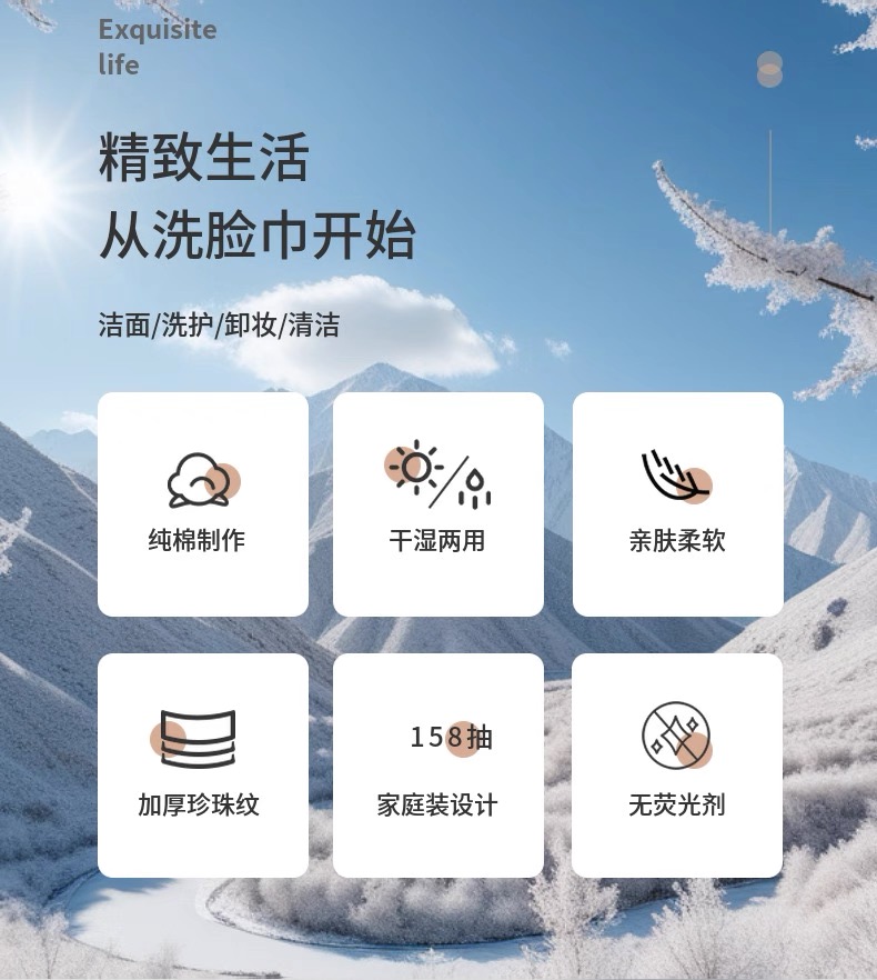 倾臣100%新疆棉一次性洗脸巾悬挂式(20*18cm)158抽*2提