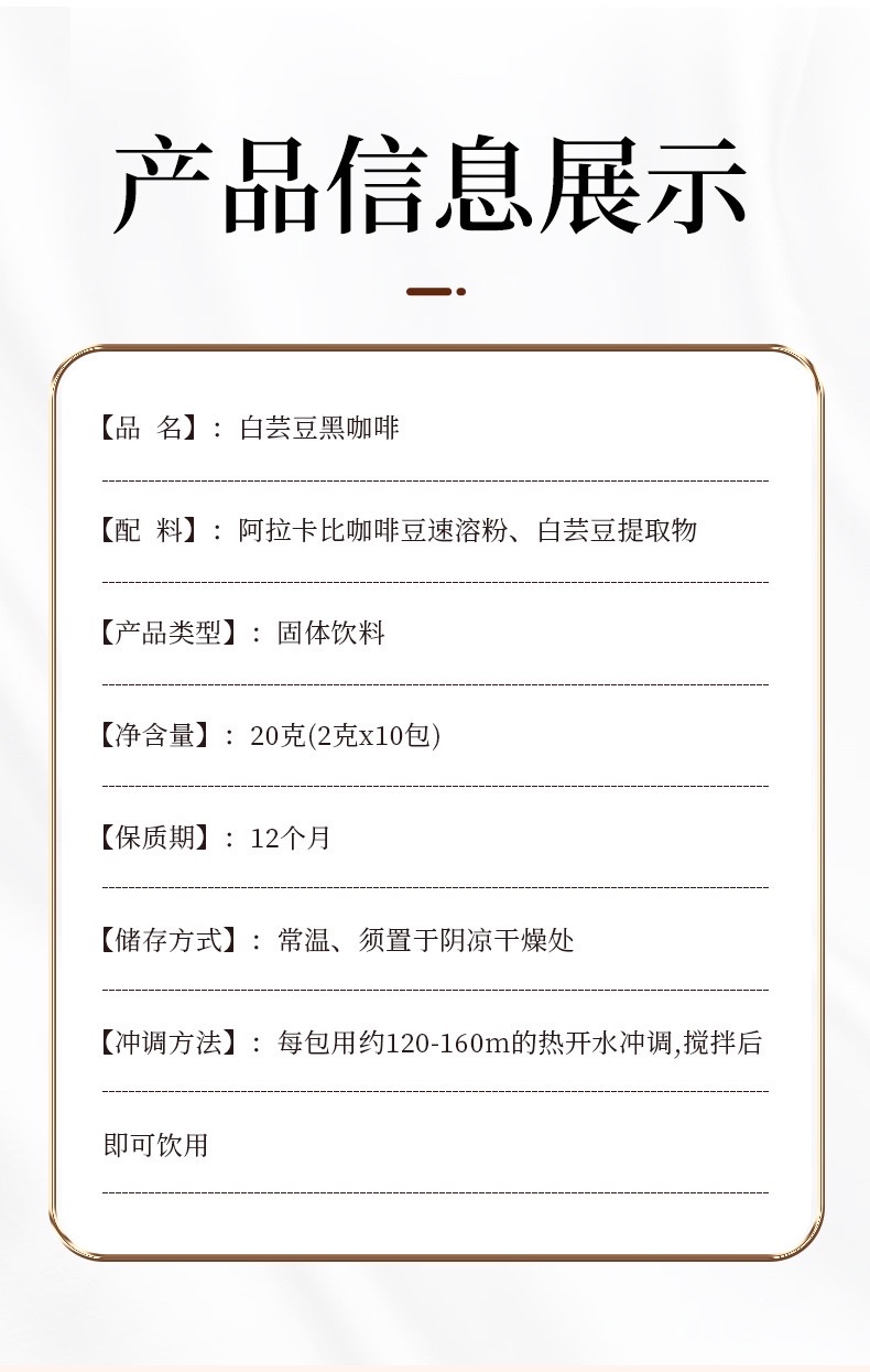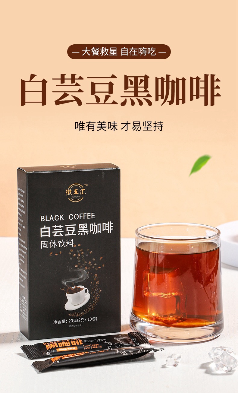 徽五汇白芸豆黑咖啡速溶咖啡无糖固体饮料10盒