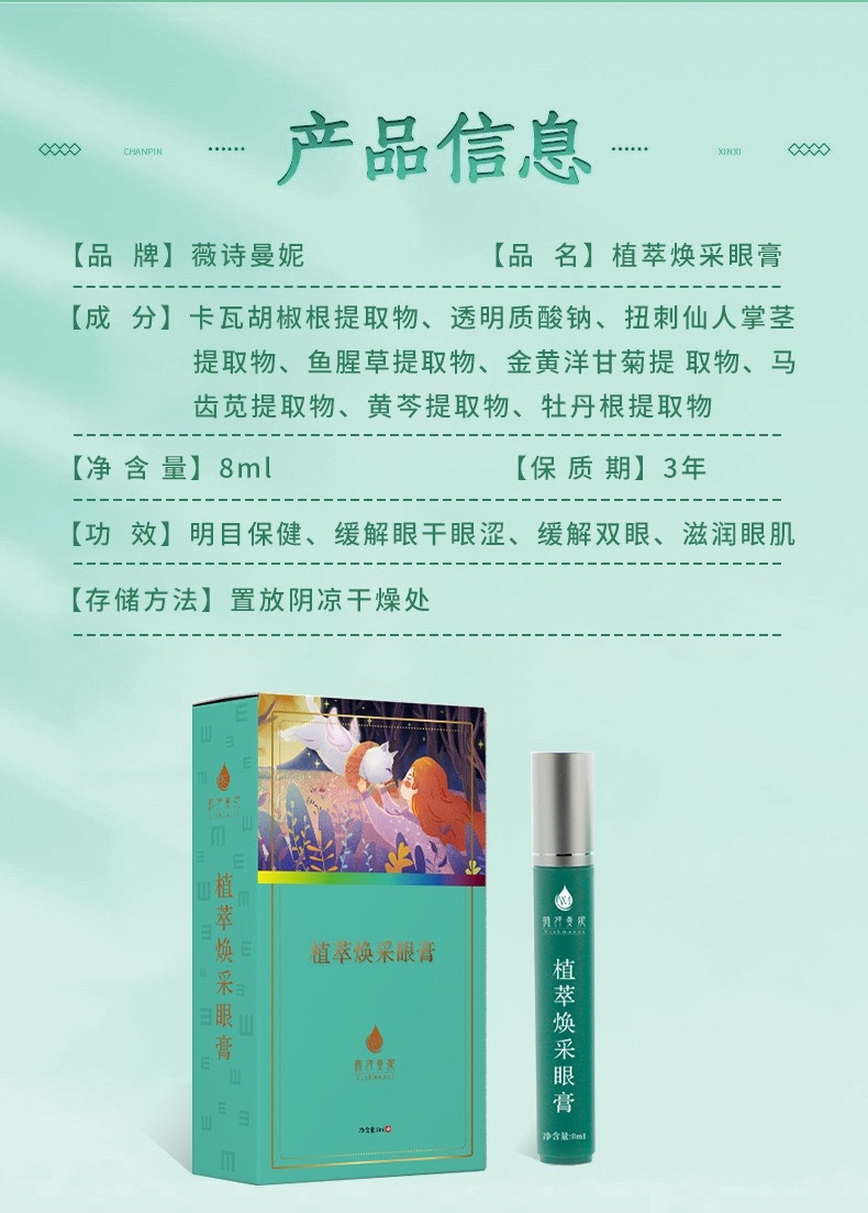 薇诗曼妮植萃焕采眼膏护目保健眼膏缓解眼干涩疲劳8ml